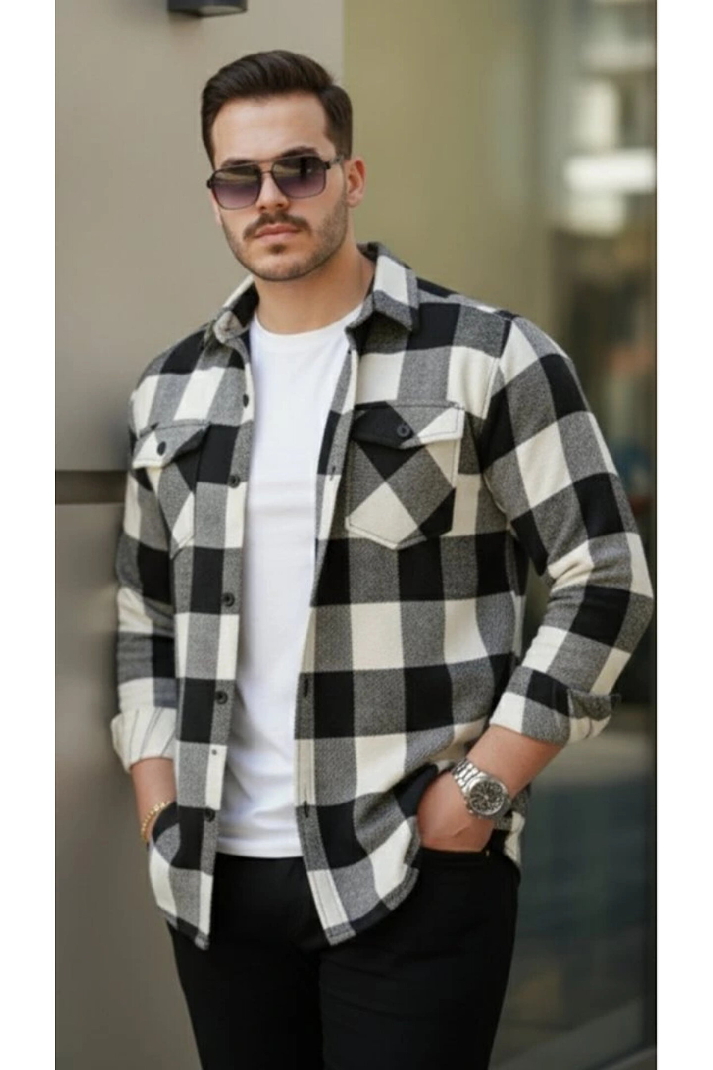 Erkek Uzun Kollu Oduncu Gömlek - Siyah
