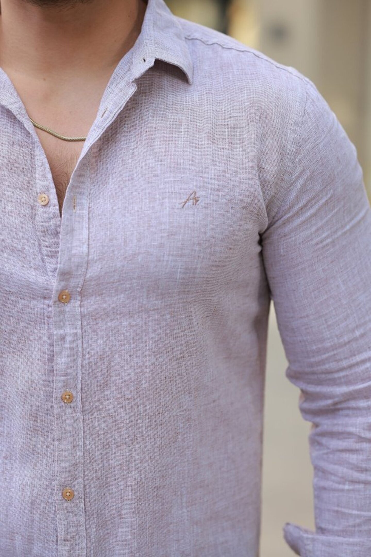 Erkek Pamuklu Keten Gömlek