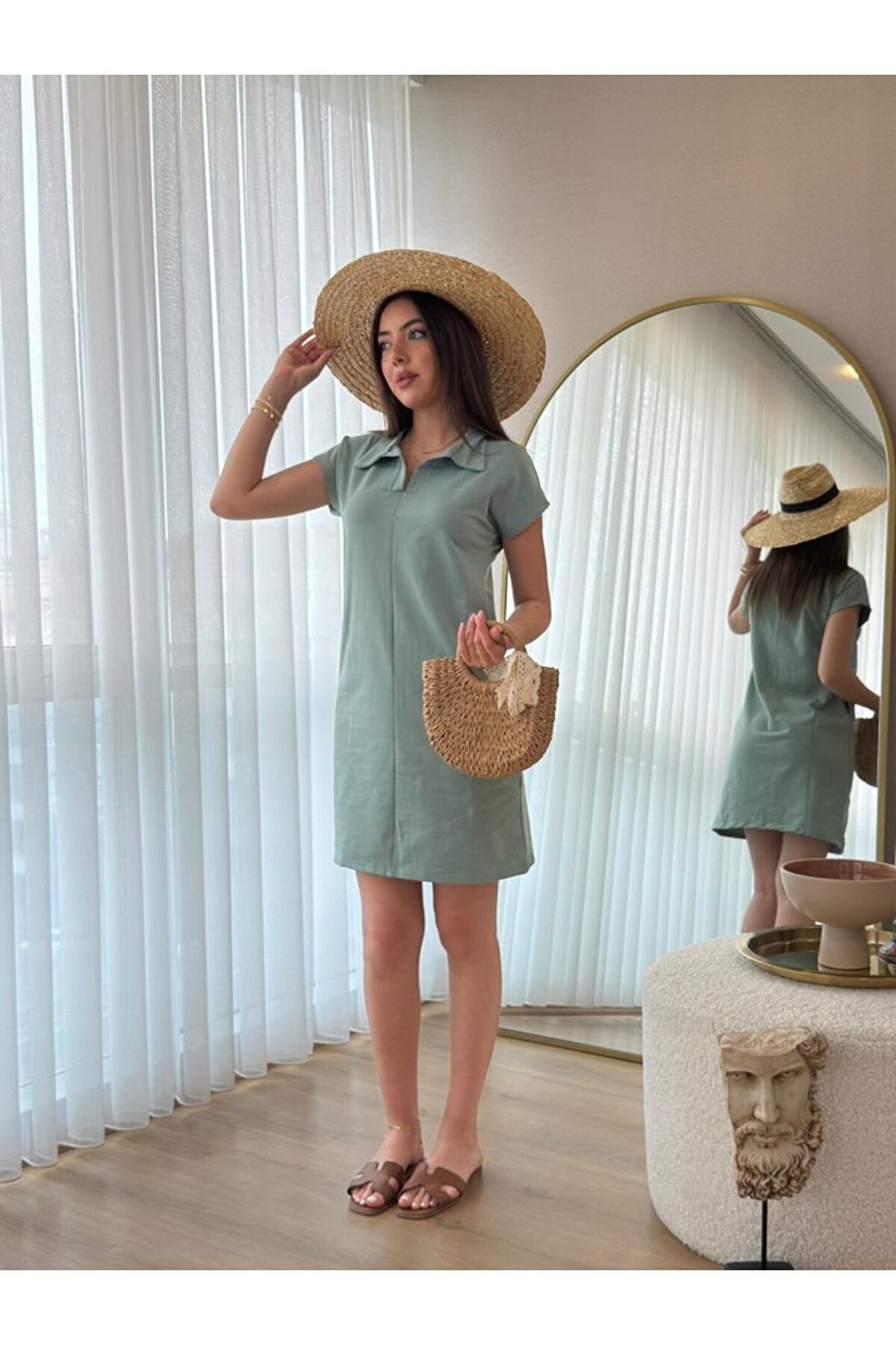 Butik Gökyüzü Moda Kadın Kısa Kollu Yakalı Viskon Iki Iplik Elbise