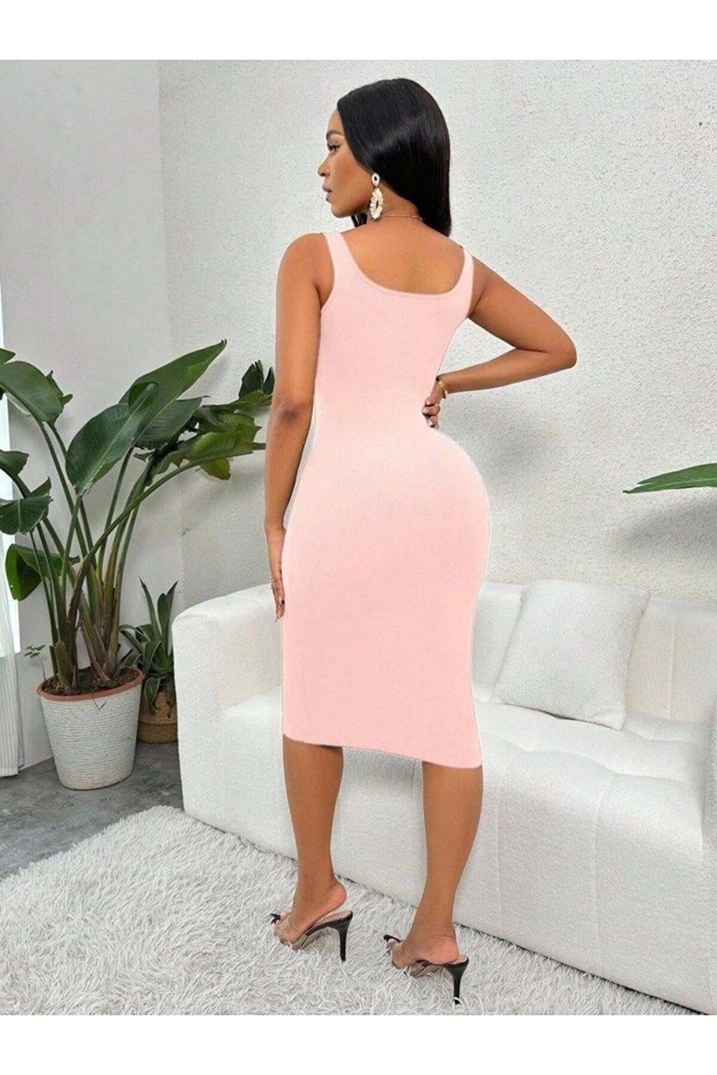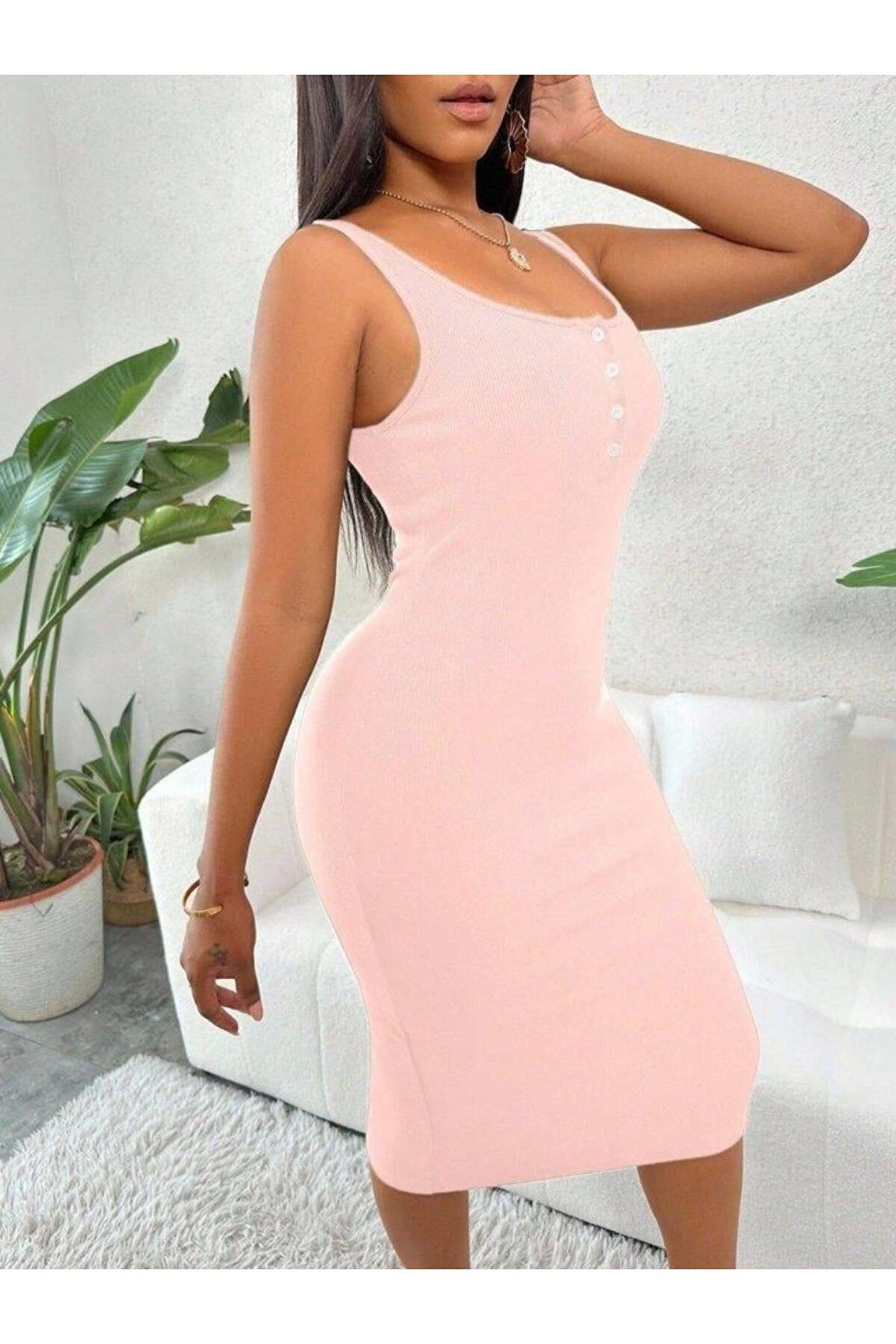 Butik Kadın Askılı önü Düğmeli Midi Kaşkorse Elbise