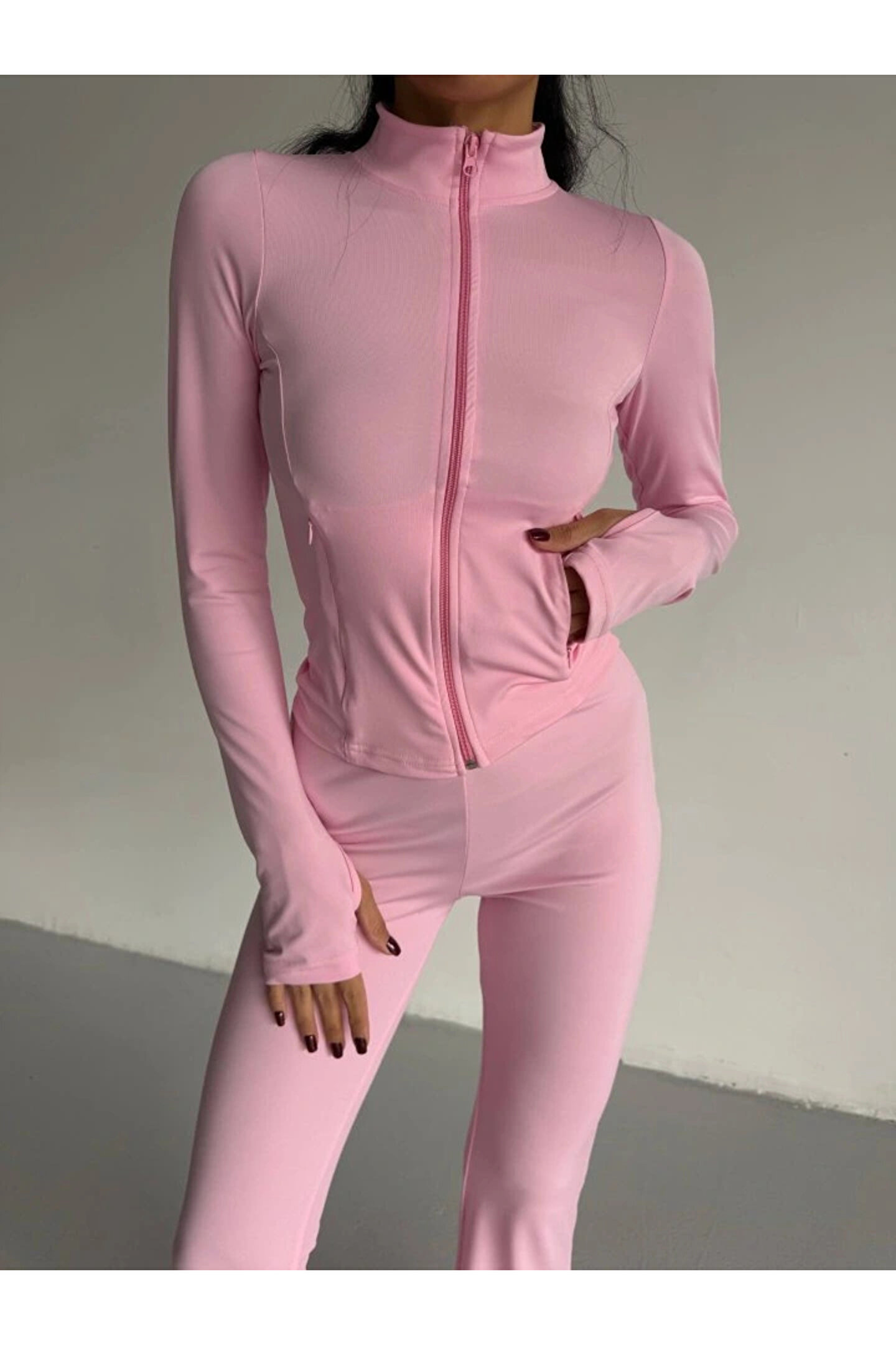 Kadın Balıkçı Yaka Cep Detaylı Ceket Ve Ispanyol Paça Spor Ikili Takım