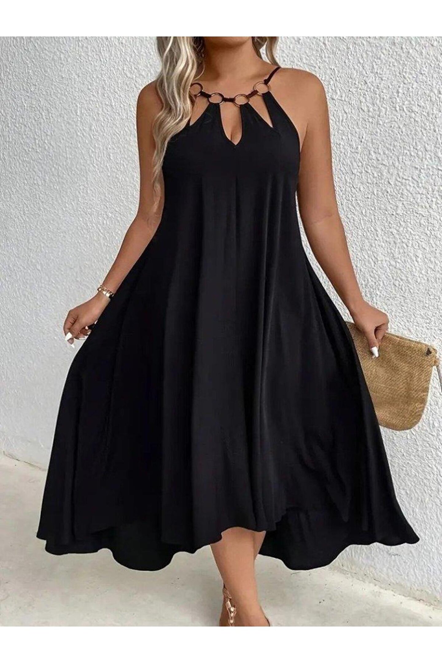Butik Kadın Boyundan Askılı Damla Detaylı Halkalı Asimetrik Kesim Viskon Elbise