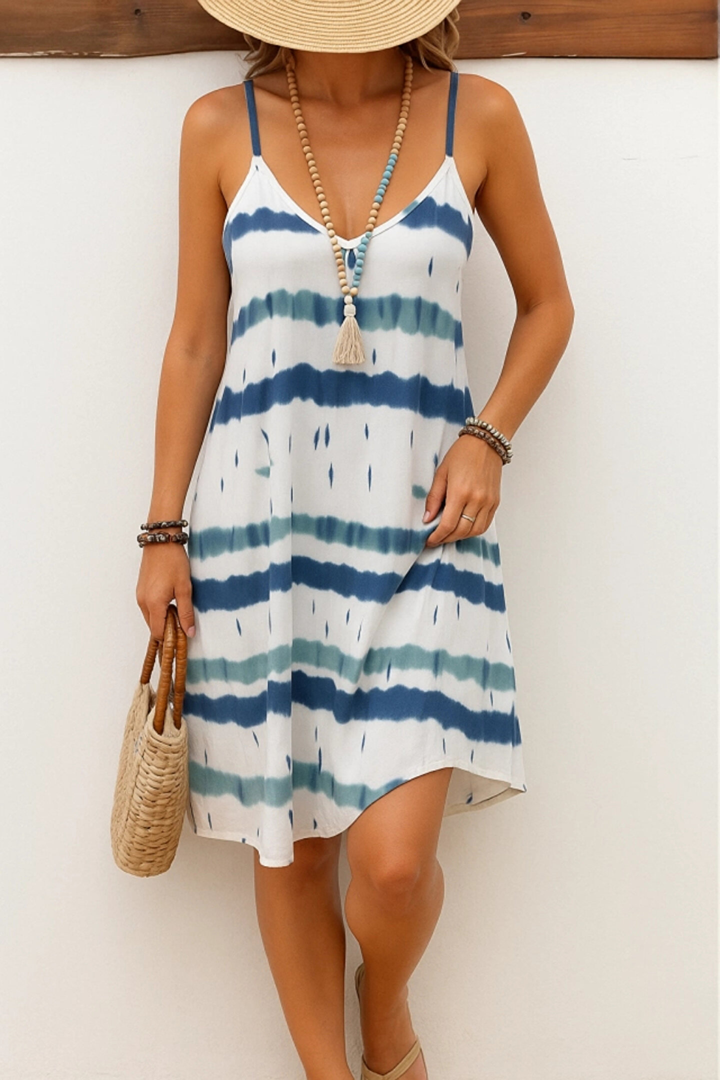 Butik Kadın Ip Askılı V Yakalı Karışık Renkli Süprem Elbise