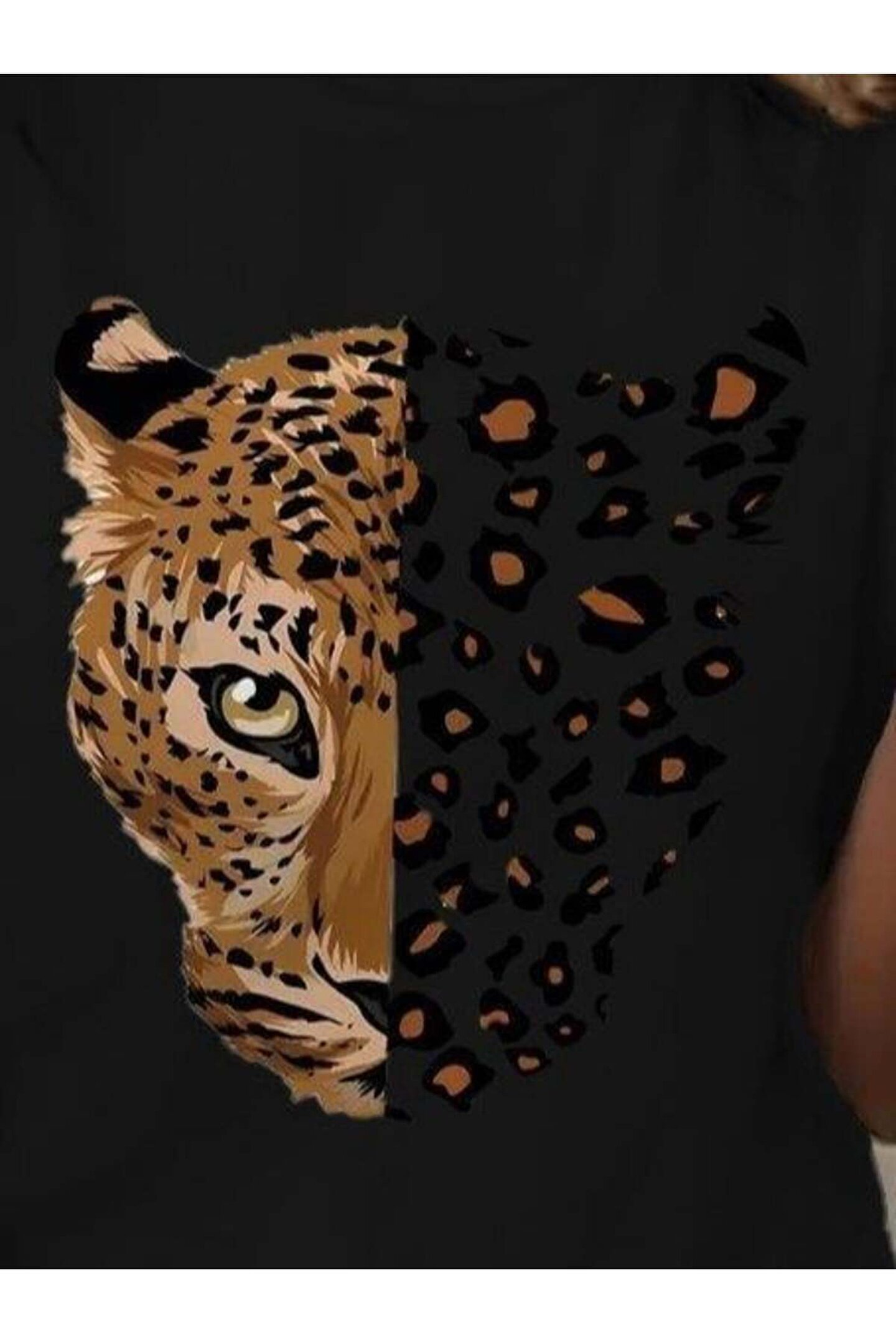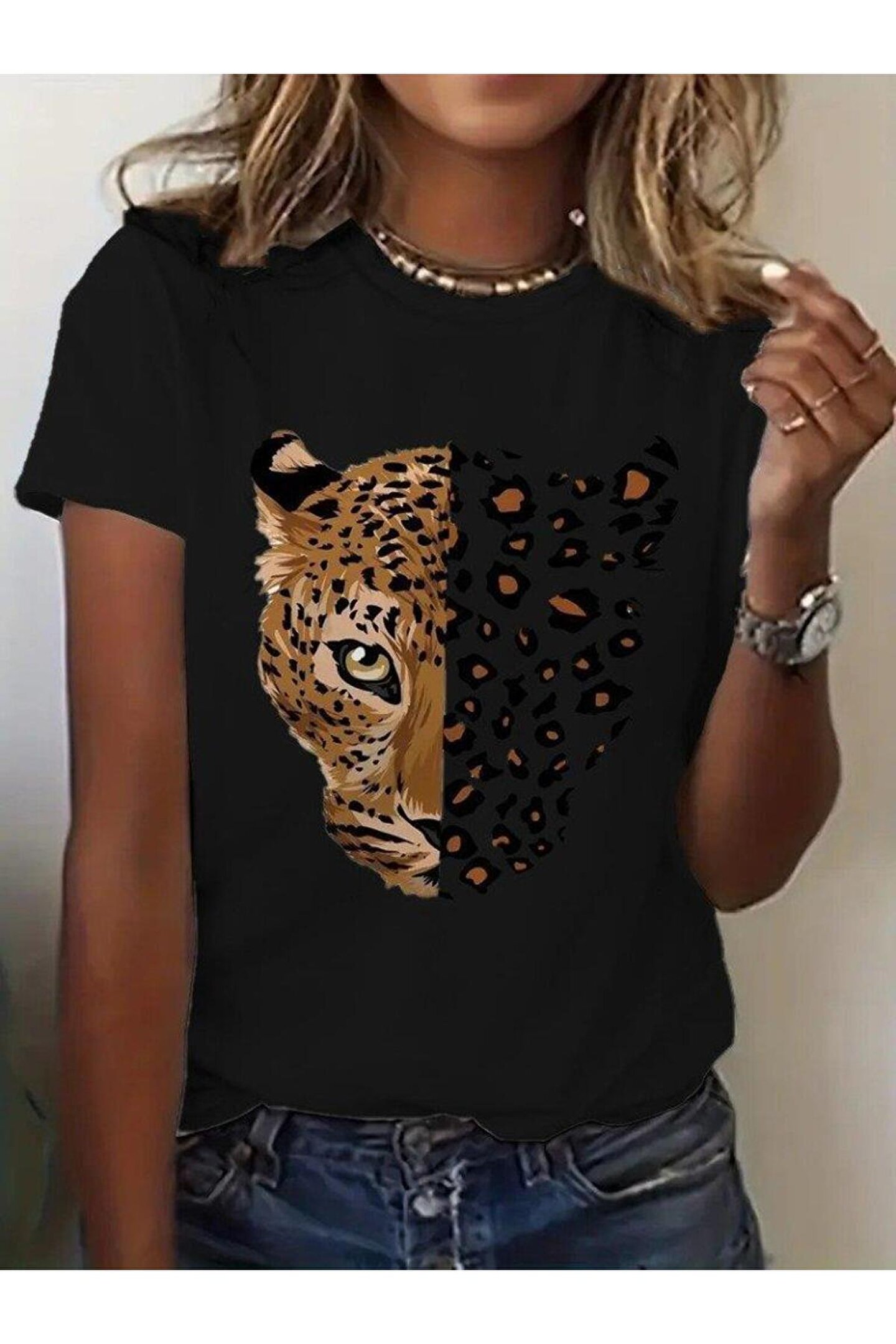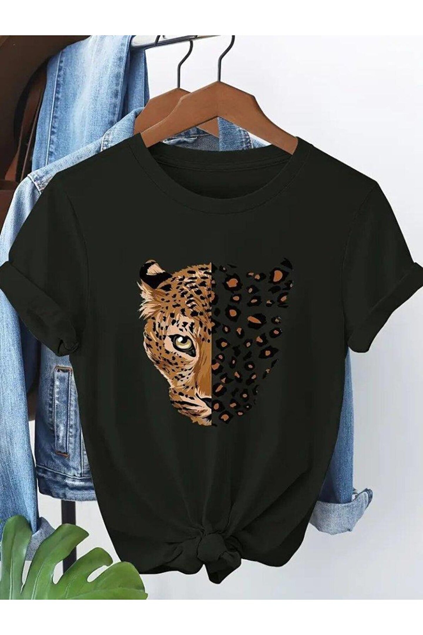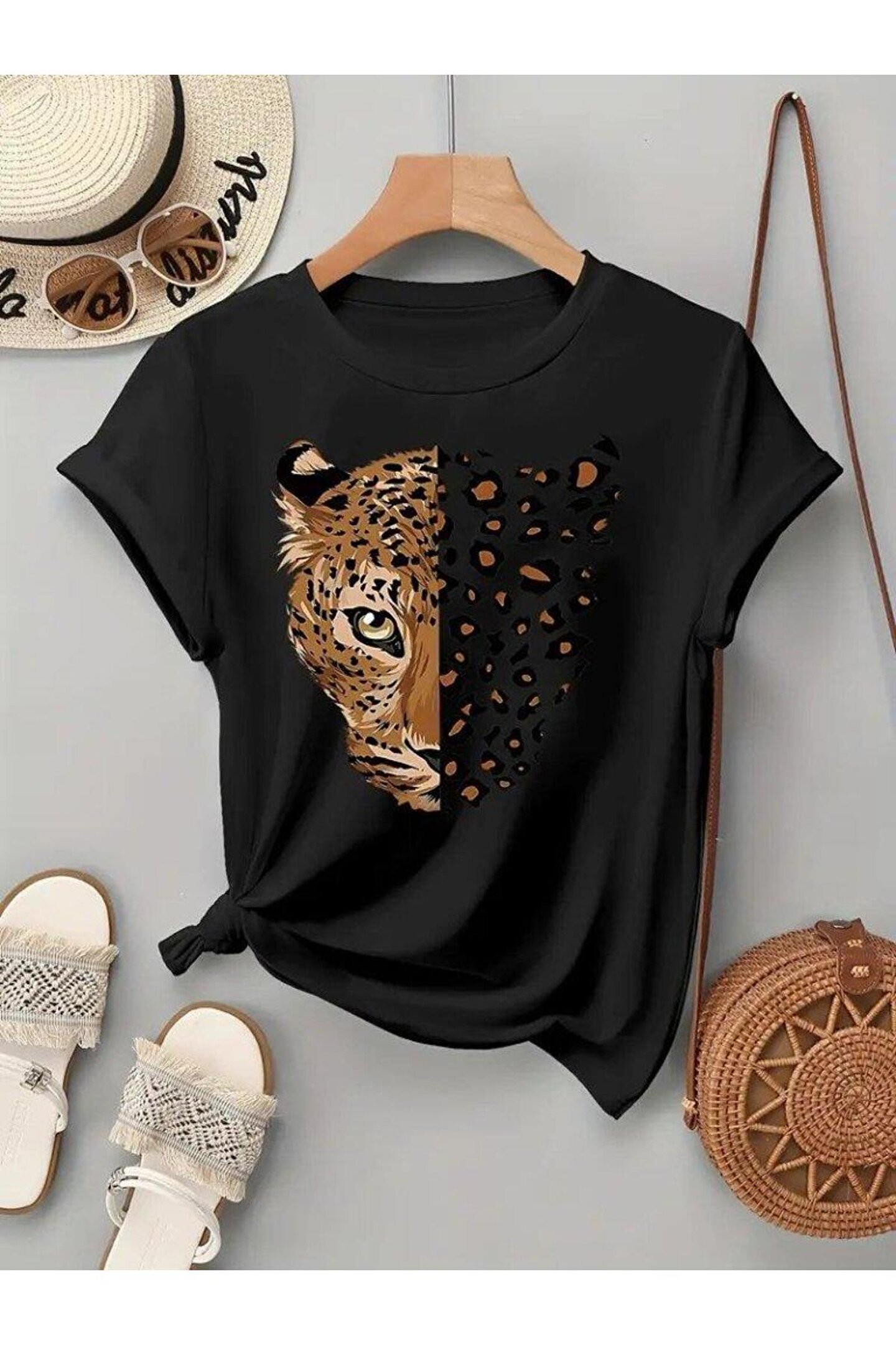 Kadın Kısa Kollu Bisiklet Yaka Desenli Viskon Bluz