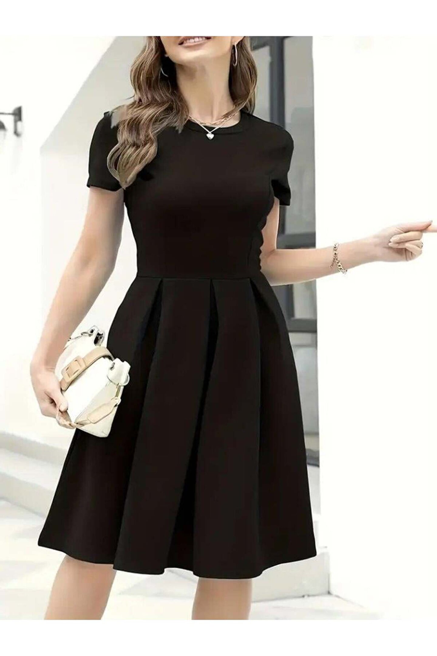 Kadın Kısa Kollu Bisiklet Yaka önden Pile Detaylı Janjan Krep Elbise