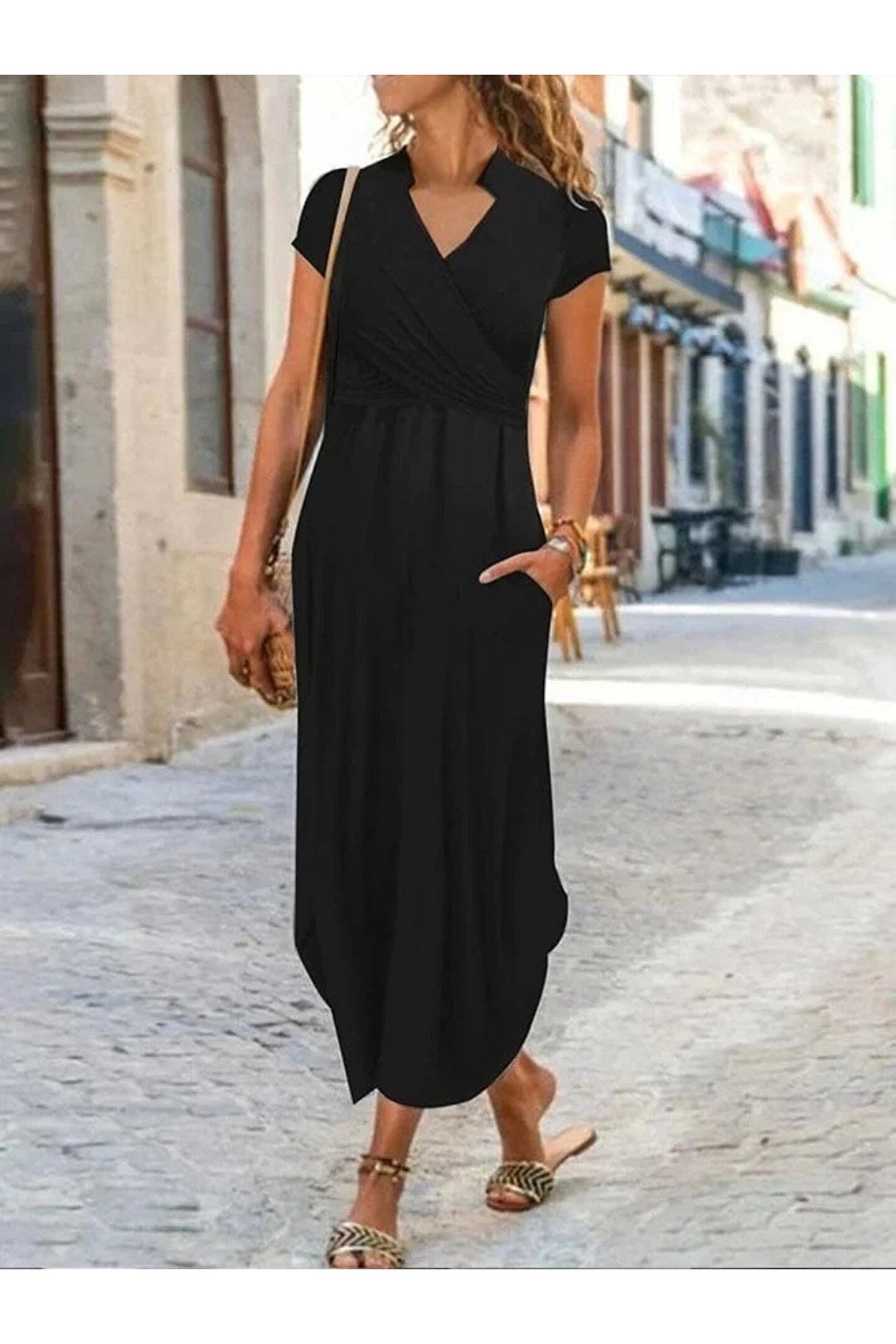 Kadın Kısa Kollu Hakim V Yaka Viskon Elbise