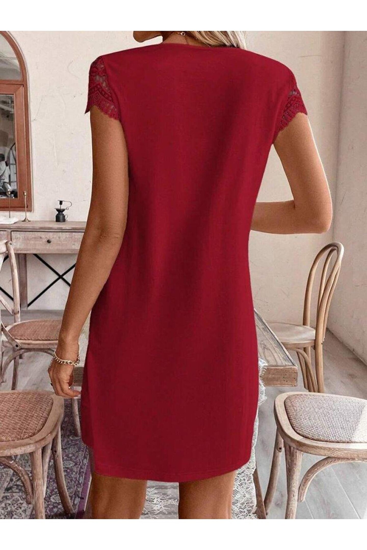 Butik Kadın Kısa Kollu V Yakalı Viskon Elbise