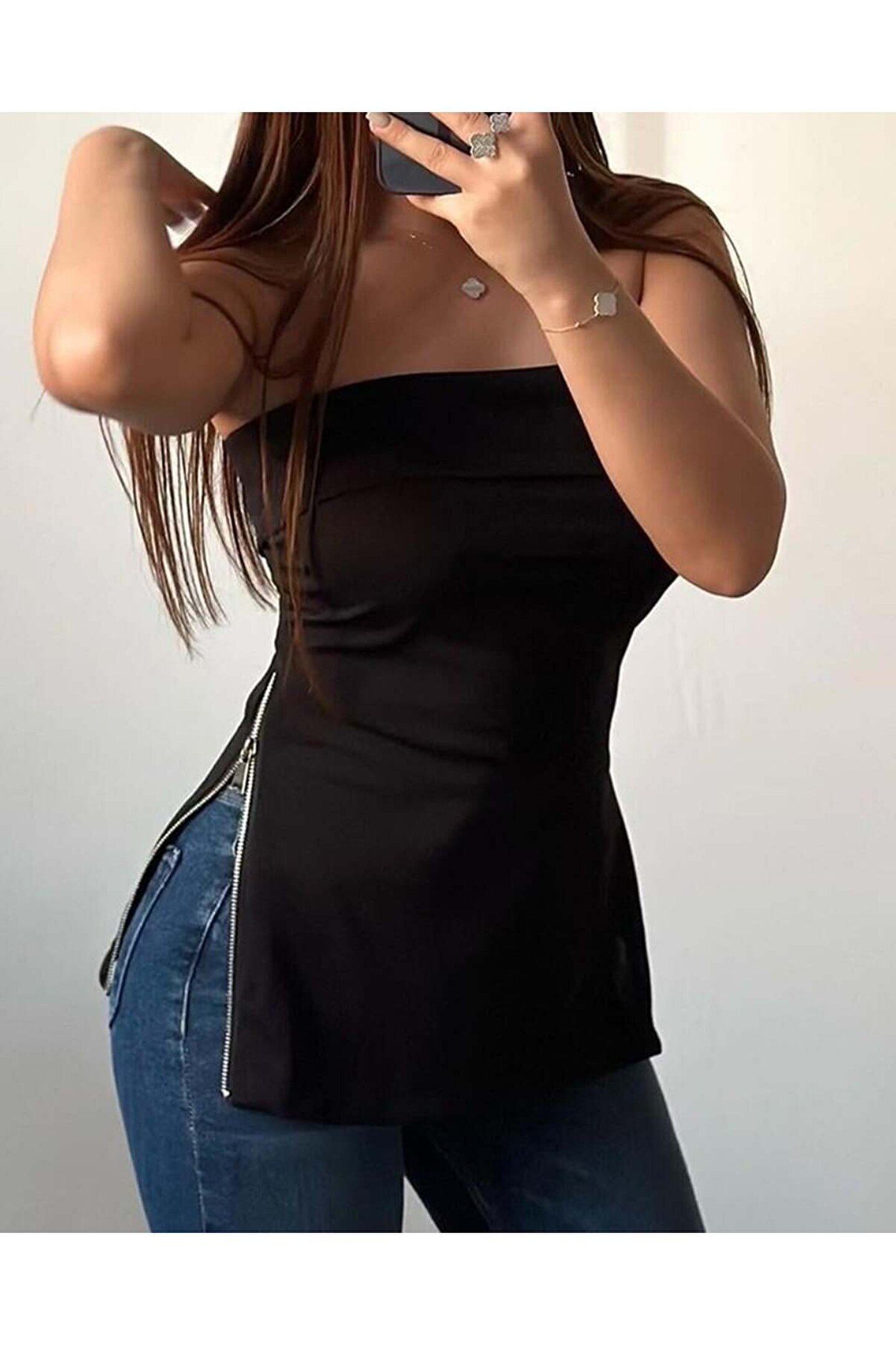 Butik Kadın Kolsuz Iki Yanı Fermuarlı Straplez Dalgıç Bluz