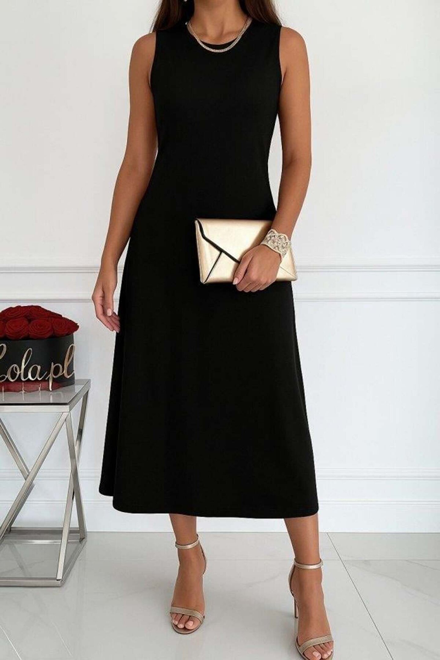 Butik Kadın Sıfır Kollu Bisiklet Yaka Midi Viskon Iki Iplik Elbise