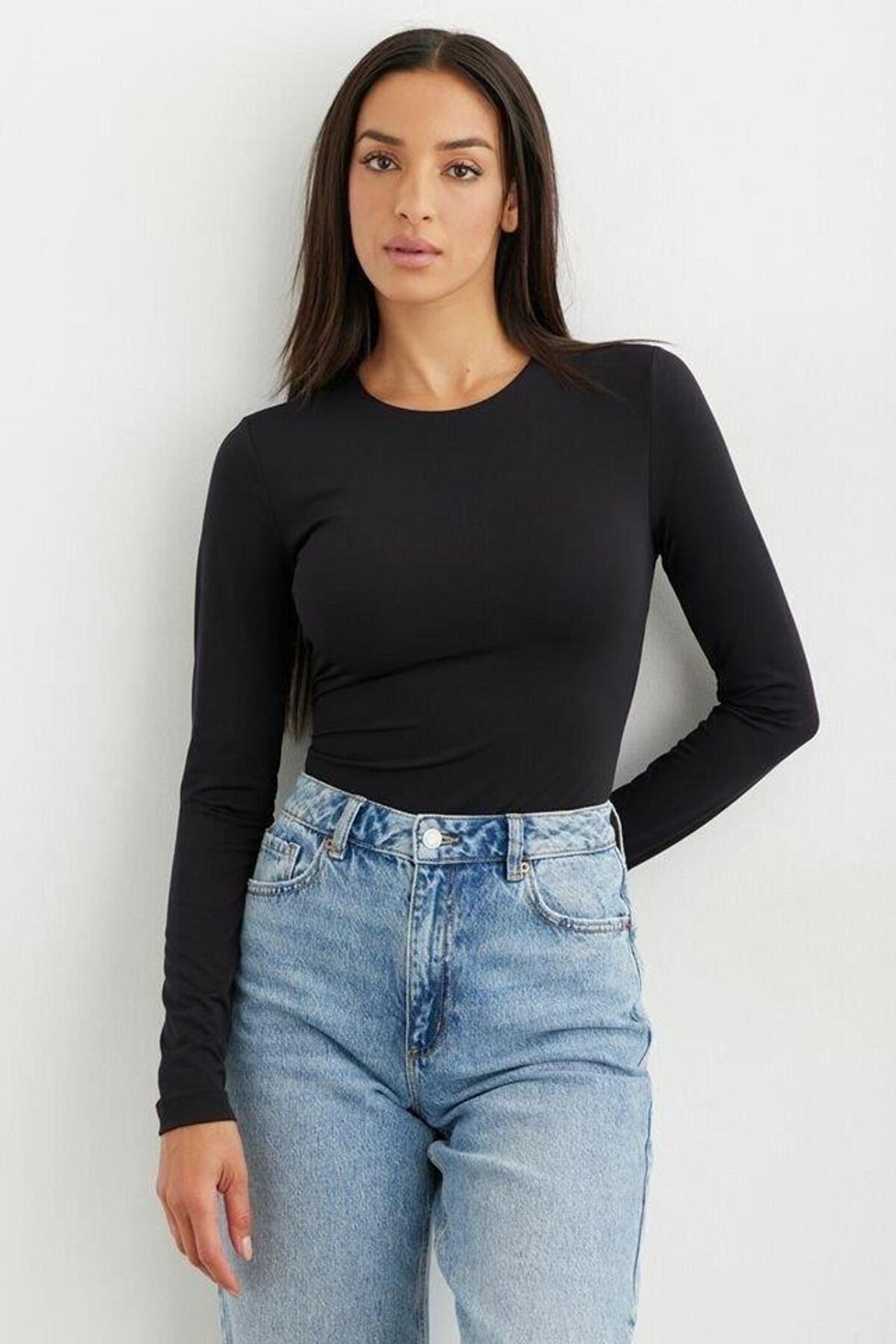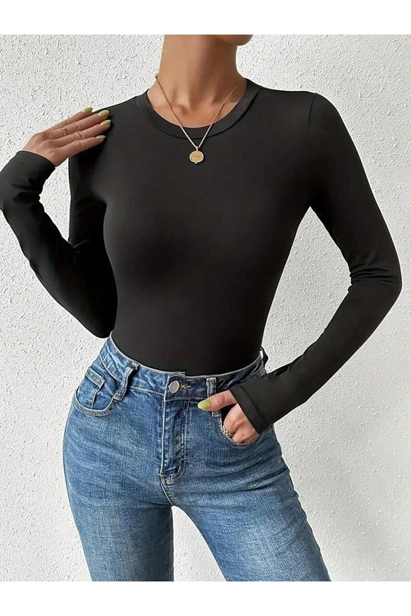 Butik Kadın Uzun Kollu Bisiklet Yaka Süprem Bluz