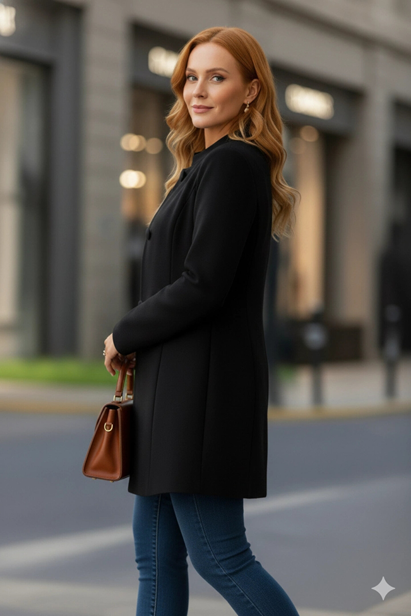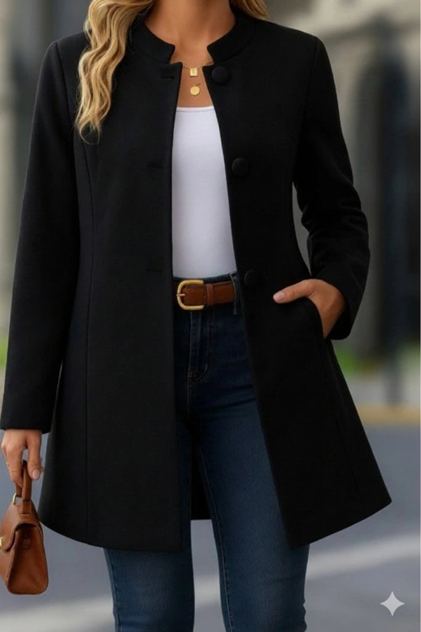 Butik Kadın Uzun Kollu Yakalı önü Düğmeli Ithal Kaşe Astarlı Kaban
