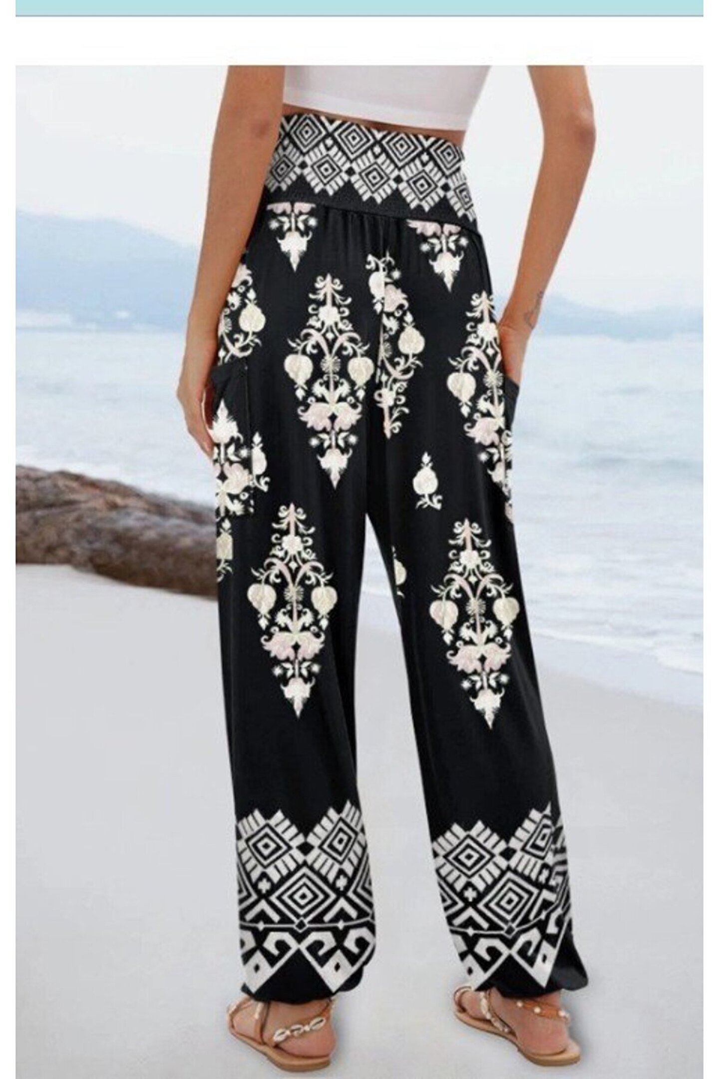 Butik Kadın Yüksek Bel Desenli Lastikli Süprem Pantolon