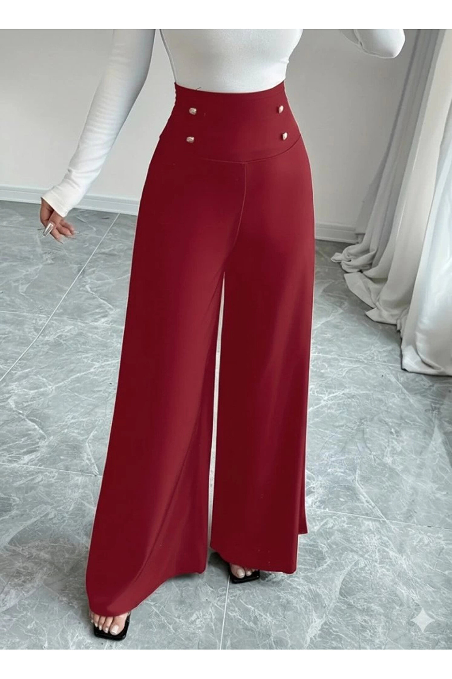 Butik Kadın Yüksek Bel Düğmeli Geniş Paçalı Ithal Krep Pantolon