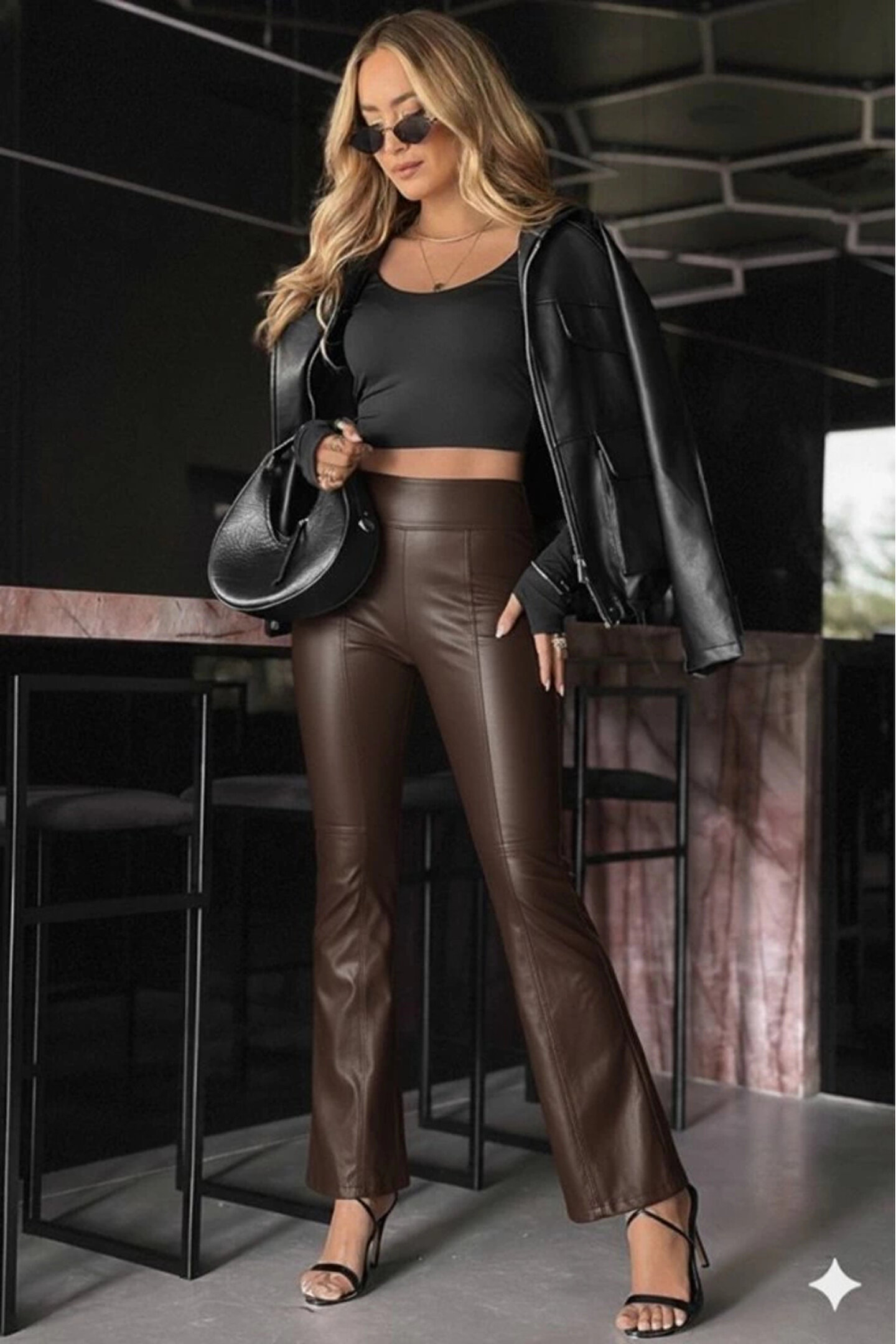 Butik Kadın Yüksek Bel Paçaya Doğru Geniş Deri Pantolon