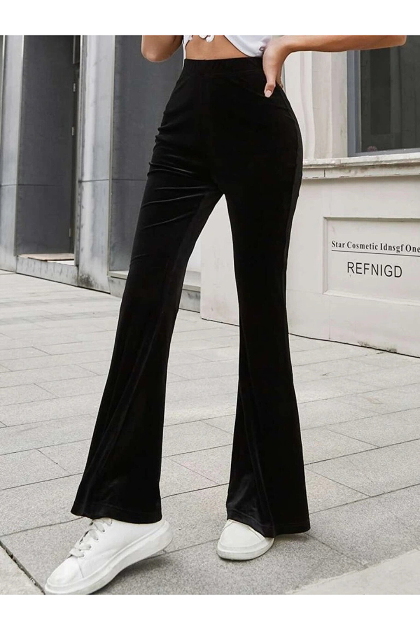 Butik Kadın Yüksek Bel Paçaya Doğru Genişleyen Kadife Pantolon