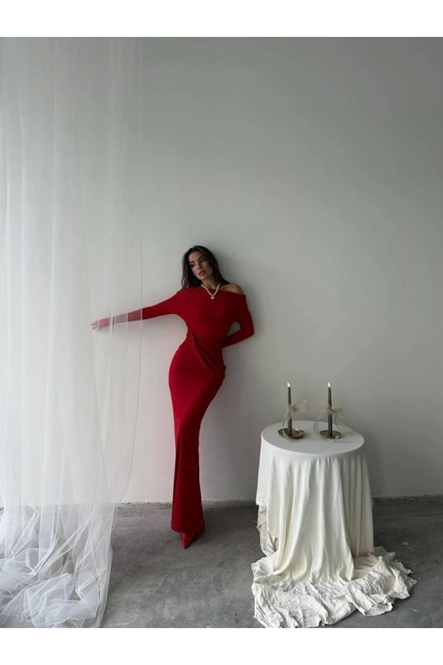 Hediye paketi yapılırKayık Yaka Uzun Kurdele Elbise
