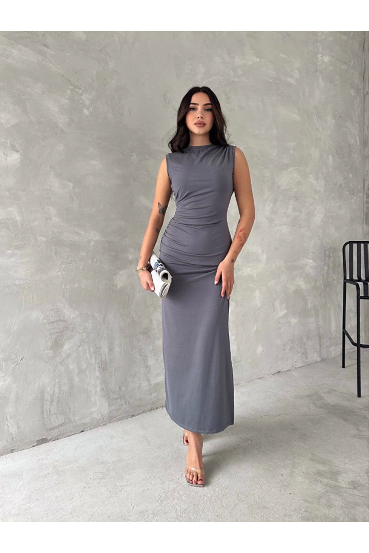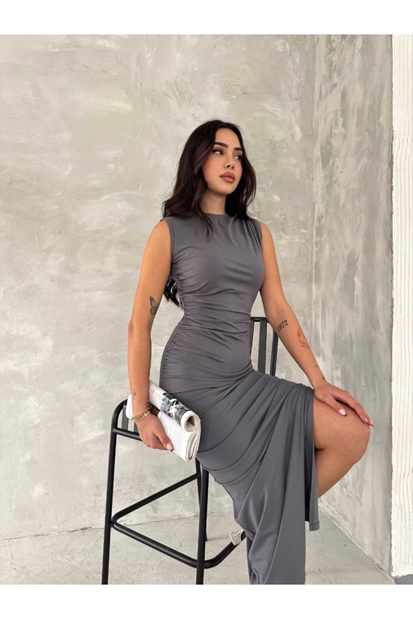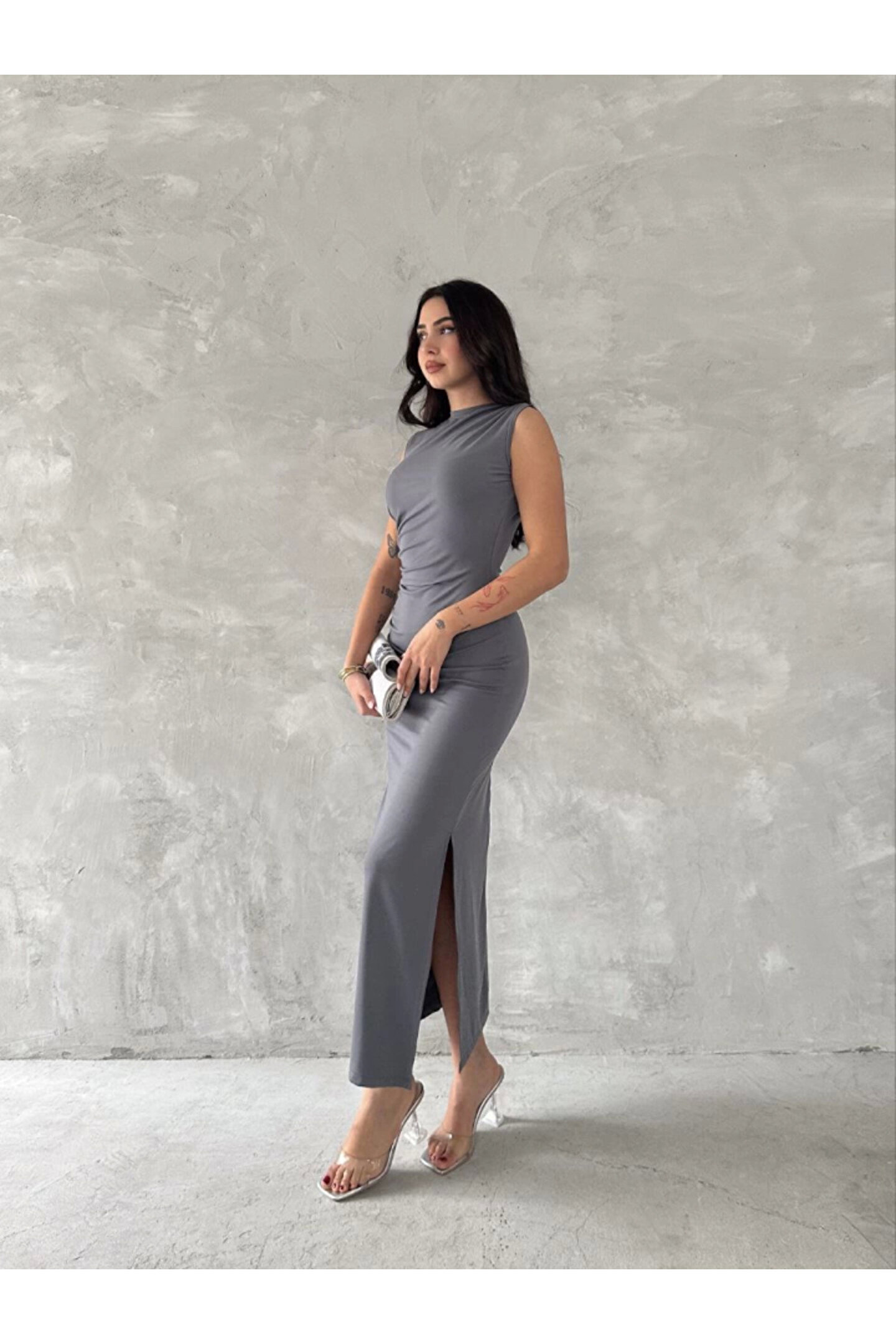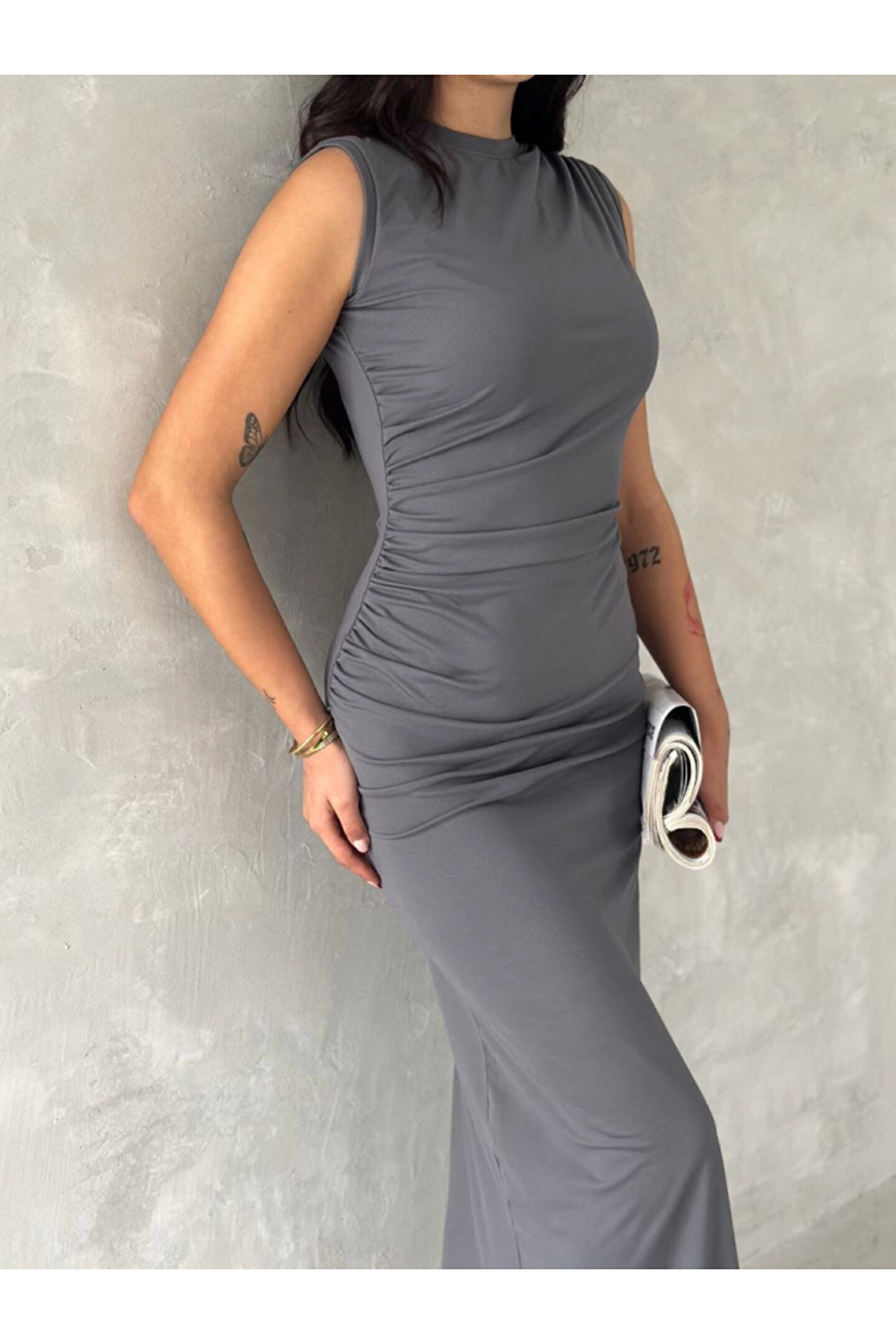 - Orta kalınlıkta pamuk, polyester ve elastan karışımı kumaştan üretilmiştir, bu sayede hem rahatlık hem de dayanıklılık sunar.; - Asimetrik silueti ile modern ve şık bir görünüm sağlar; her türlü vücut tipine uyum sağlayacak şekilde tasarlanmıştır.; - Kapamasız yapısıyla pratik kullanım imkanı tanırken, kemersiz olması da minimalist tarzınıza katkıda bulunur.; - Sürdürülebilirlik detayına önem verilmemiştir ancak bu elbisenin zarafetiyle dikkat çeker.; - Cepsiz tasarımıyla sade ve zamansız bir stil sergilerken, yırtmaç detayı hareket özgürlüğü kazandırır.; - Cool & comfort persona'ya hitap eden bu elbise, gündüzden geceye her ortamda rahatlıkla tercih edilebilir.; - Tekli paket içeriğiyle kolayca satın alınabilir ve hemen kullanılmaya hazır hale gelir.; - Büzgü detayları ile feminen çizgilere sahip olup, düz deseniyle kolayca kombinlenebilirliği arttırır.; - Uzun boy kesimi sayesinde zarif bir duruş sergilerken, slim kalıbıyla vücut hatlarını nazikçe sararak estetik bir görünüm sunar.; - Yetişkin yaş grubuna yönelik olarak tasarlanmış olup, her gardrobun vazgeçilmez parçası haline gelecek niteliktedir.; - Ürünün menşei Türkiye'dir; yerel üretim avantajlarından faydalanarak sürdürülebilir moda anlayışına destek olursunuz.; - Dokuma kumaşı sayesinde uzun süreli kullanım vaad ederken, modal kumaşın yumuşak dokusu cildinizle dosttur.; - Astarsız oluşuyla hafiflik hissi verirken, düşük sıcaklıklarda ütüleme gerektirmeyen pratik bakım imkanları sunar.; - Ters çevrilerek 30 derecede yıkama yapılması önerilir; böylece renklerin canlılığını koruyarak ilk günkü gibi kalmasını sağlayabilirsiniz.