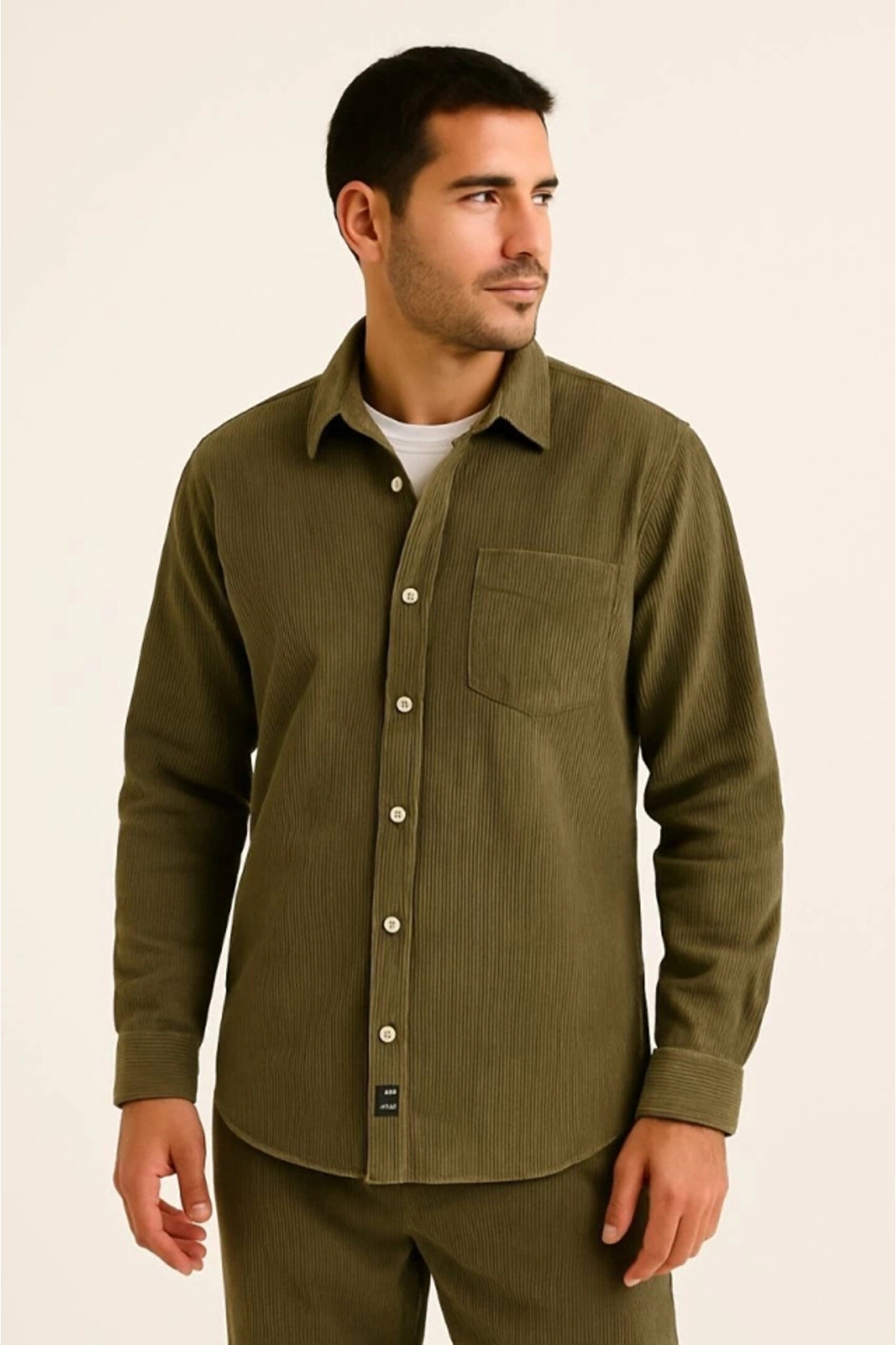 Butik MDB Erkek Fitilli Kadife Cepli Gömlek Oversize Rahat Kalıp Haki