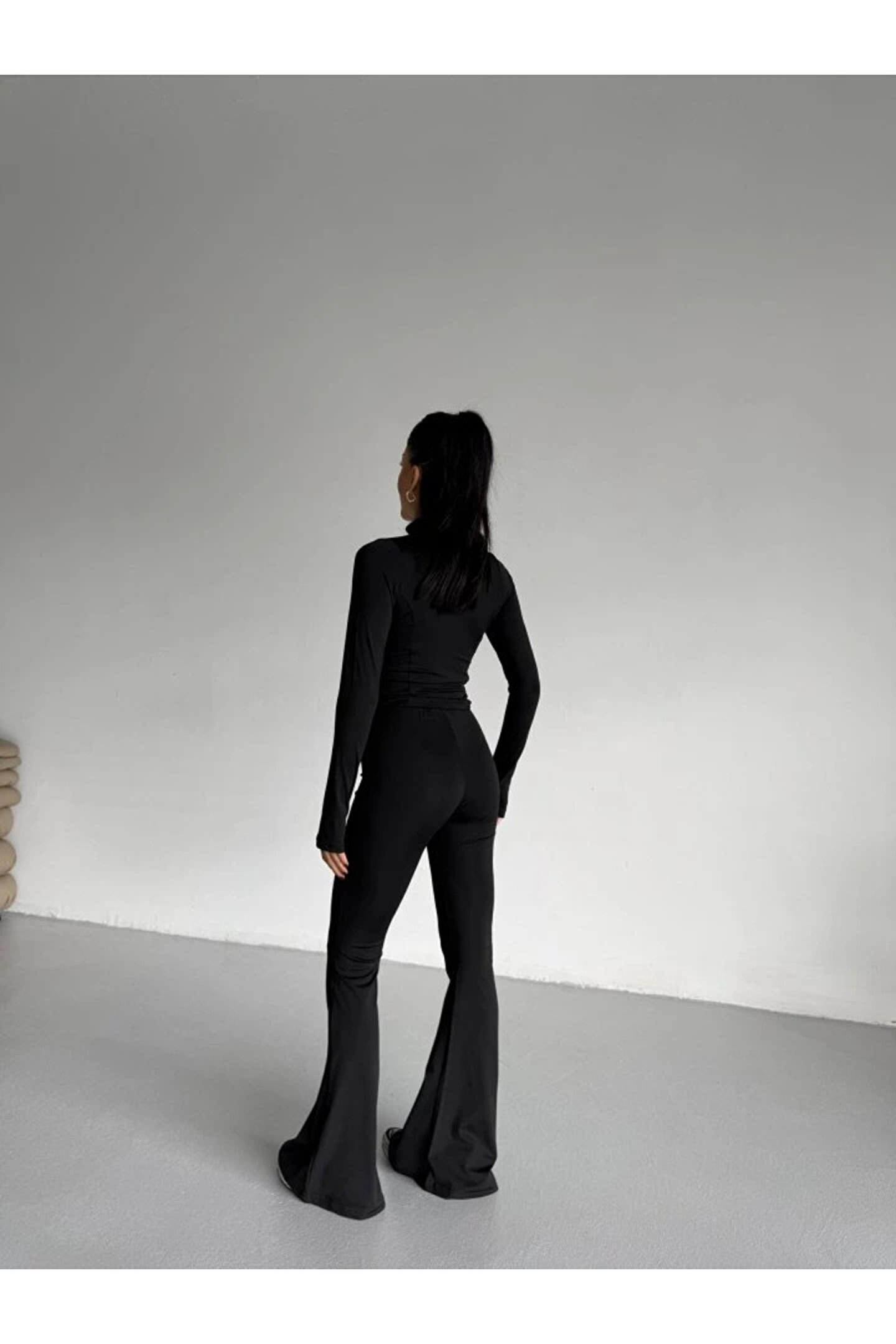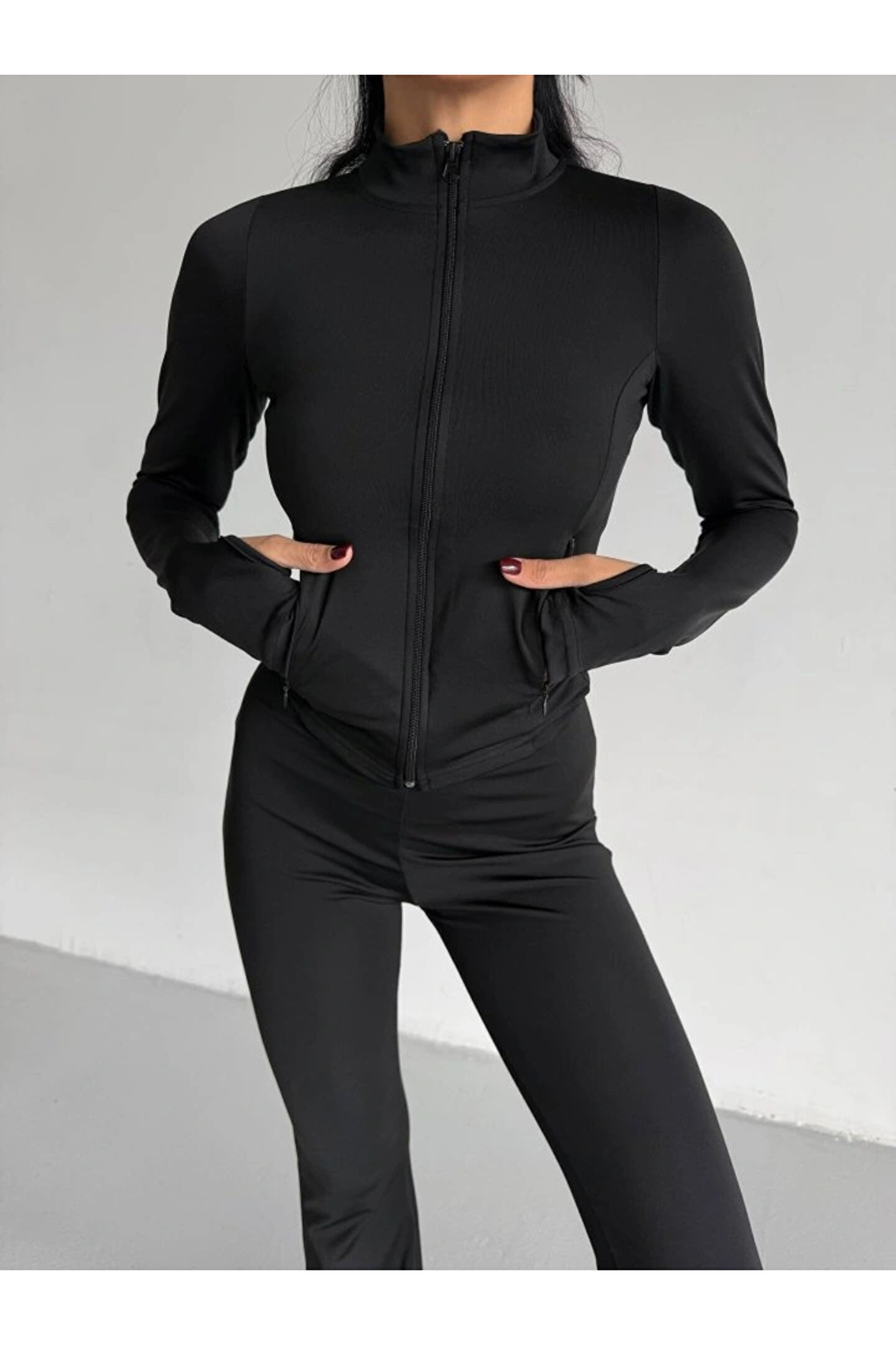 Kadın Balıkçı Yaka Cep Detaylı Ceket Ve Ispanyol Paça Spor Ikili Takım