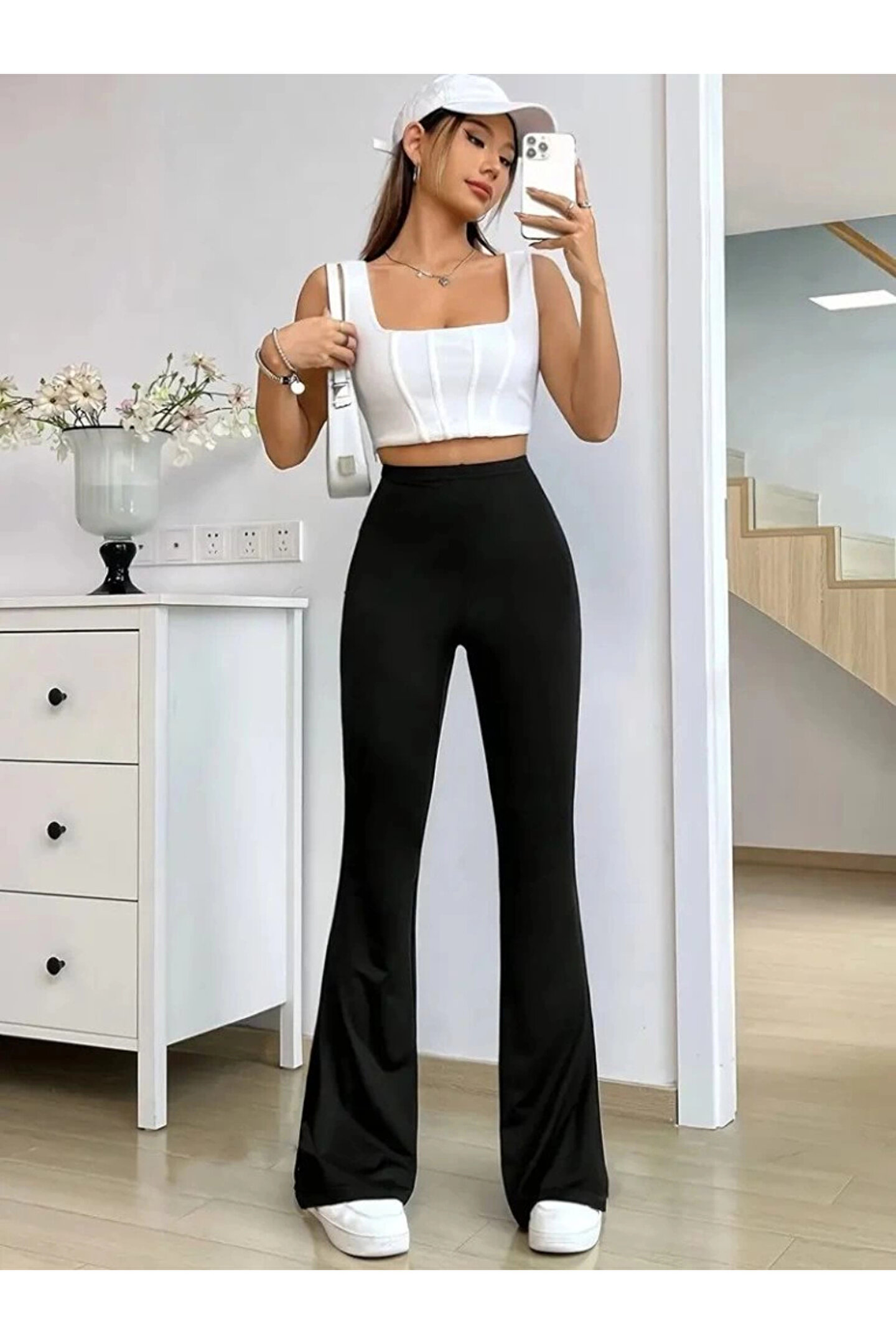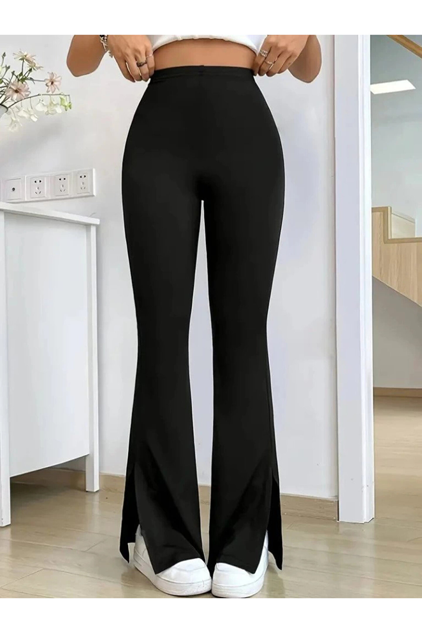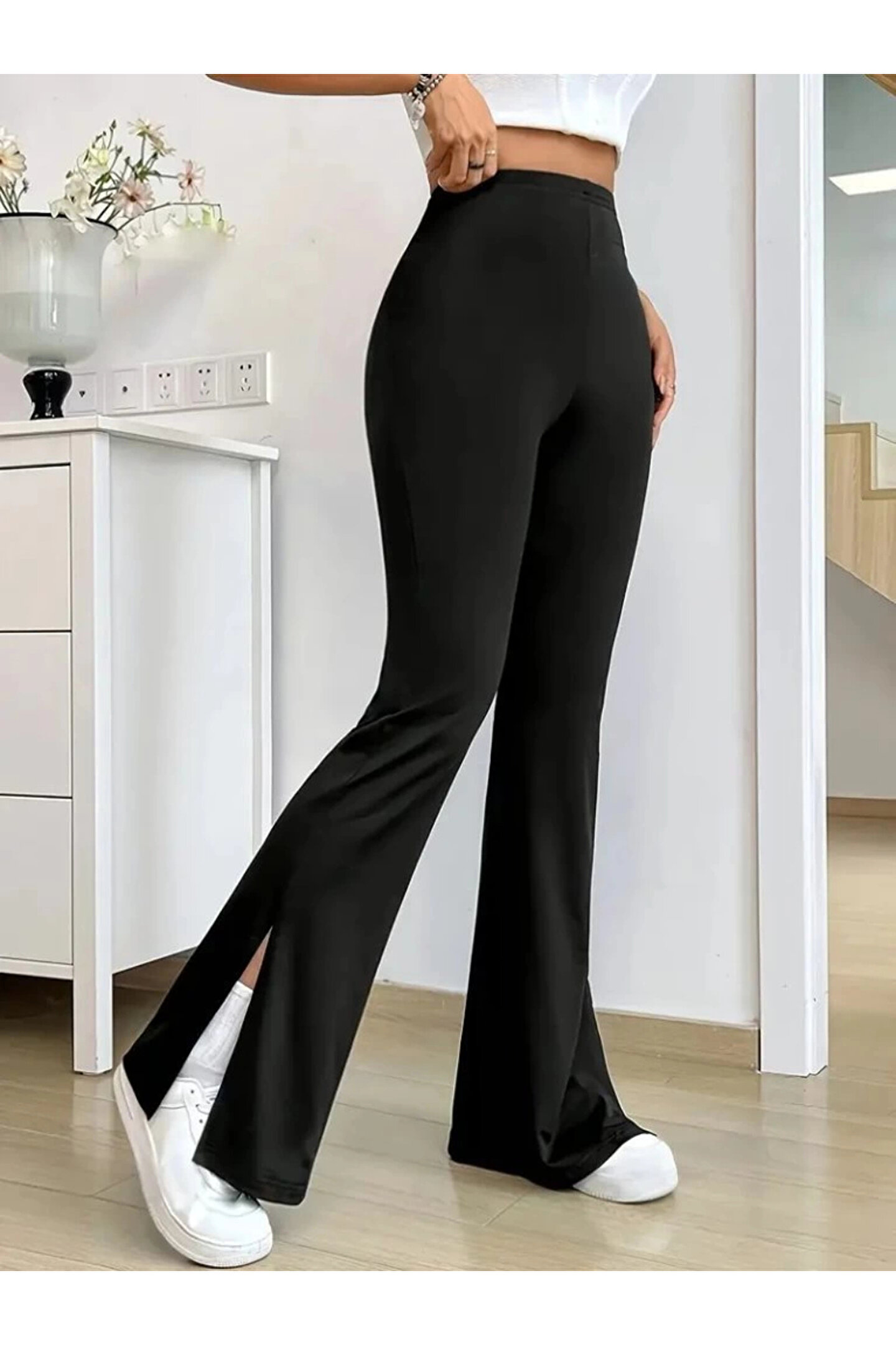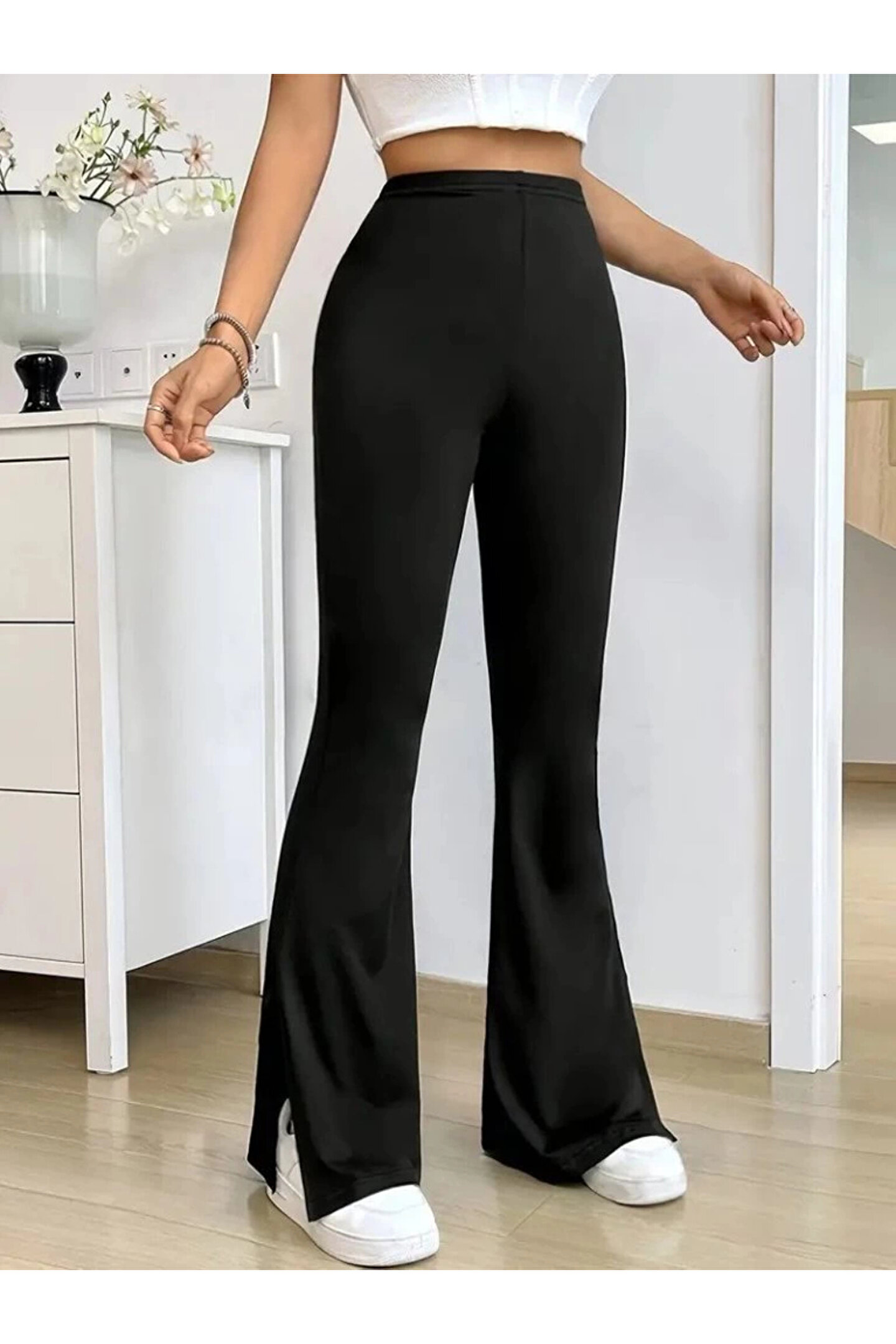 Butik MDB Kadın Yüksek Bel Paçaya Doğru Genişleyen Yandan Yırtmaçlı Dalgıç Pantolon