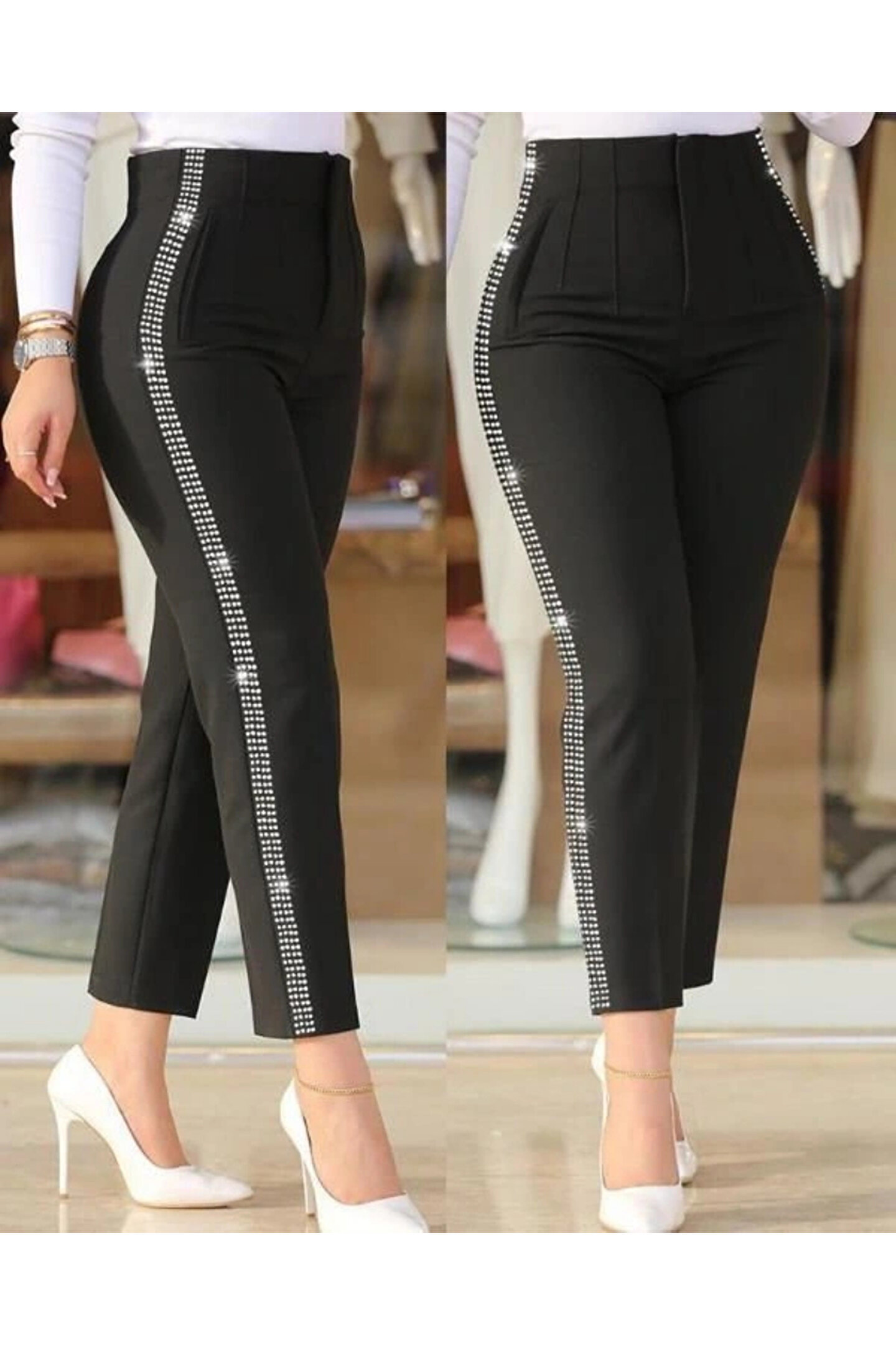 Butik MDB Kadın Yüksek Bel Yanlardan Taş Detaylı Ithal Krep Pantolon