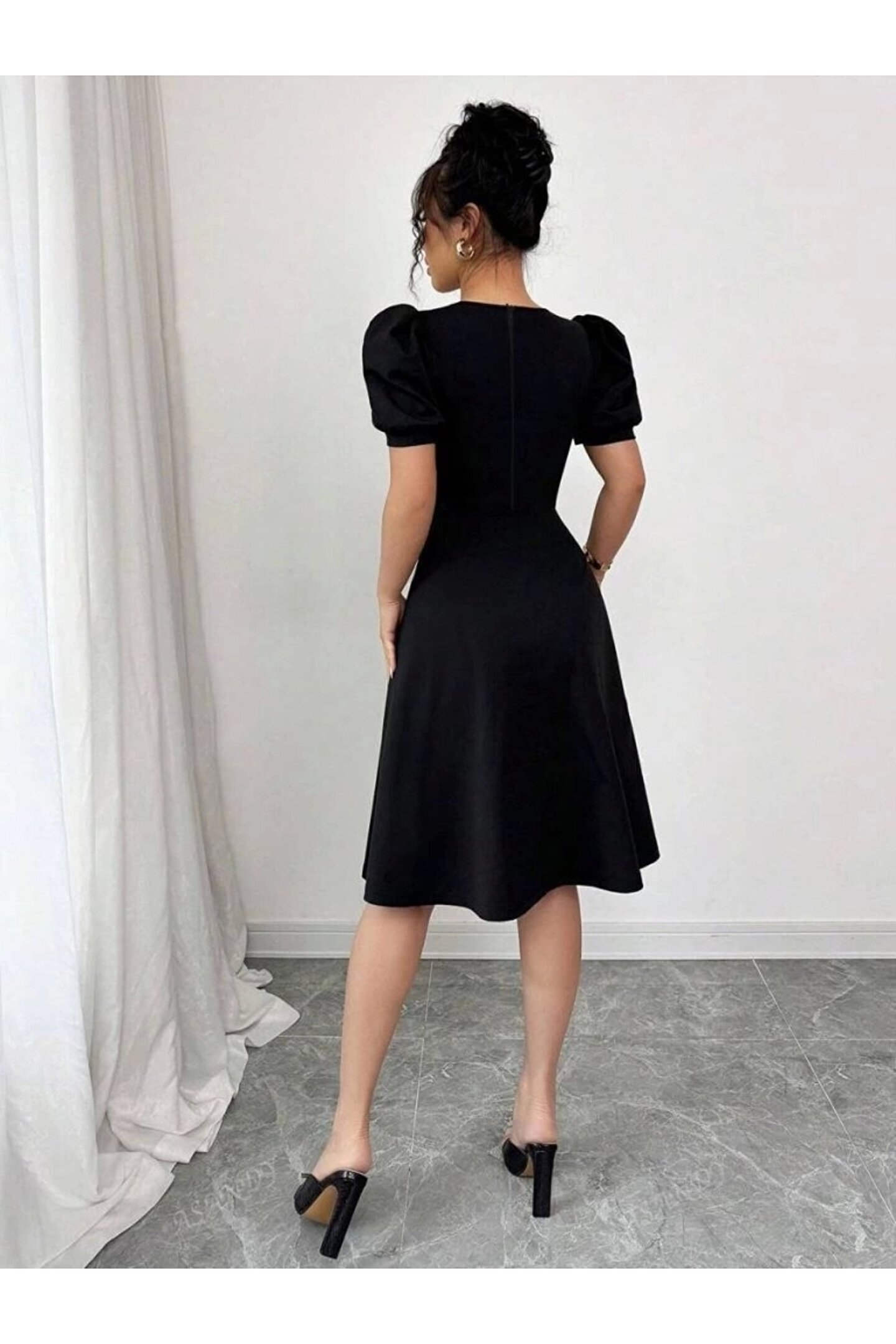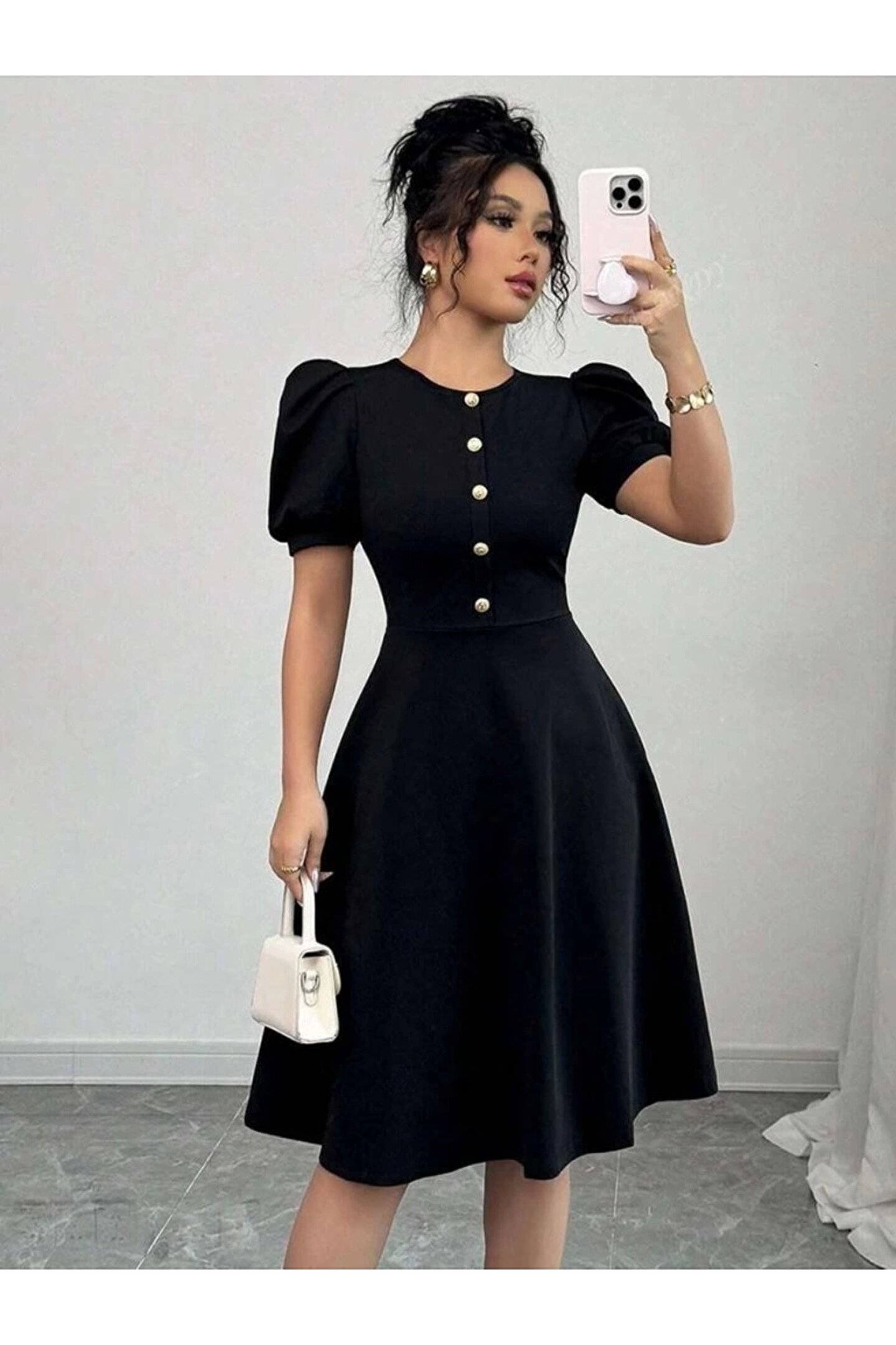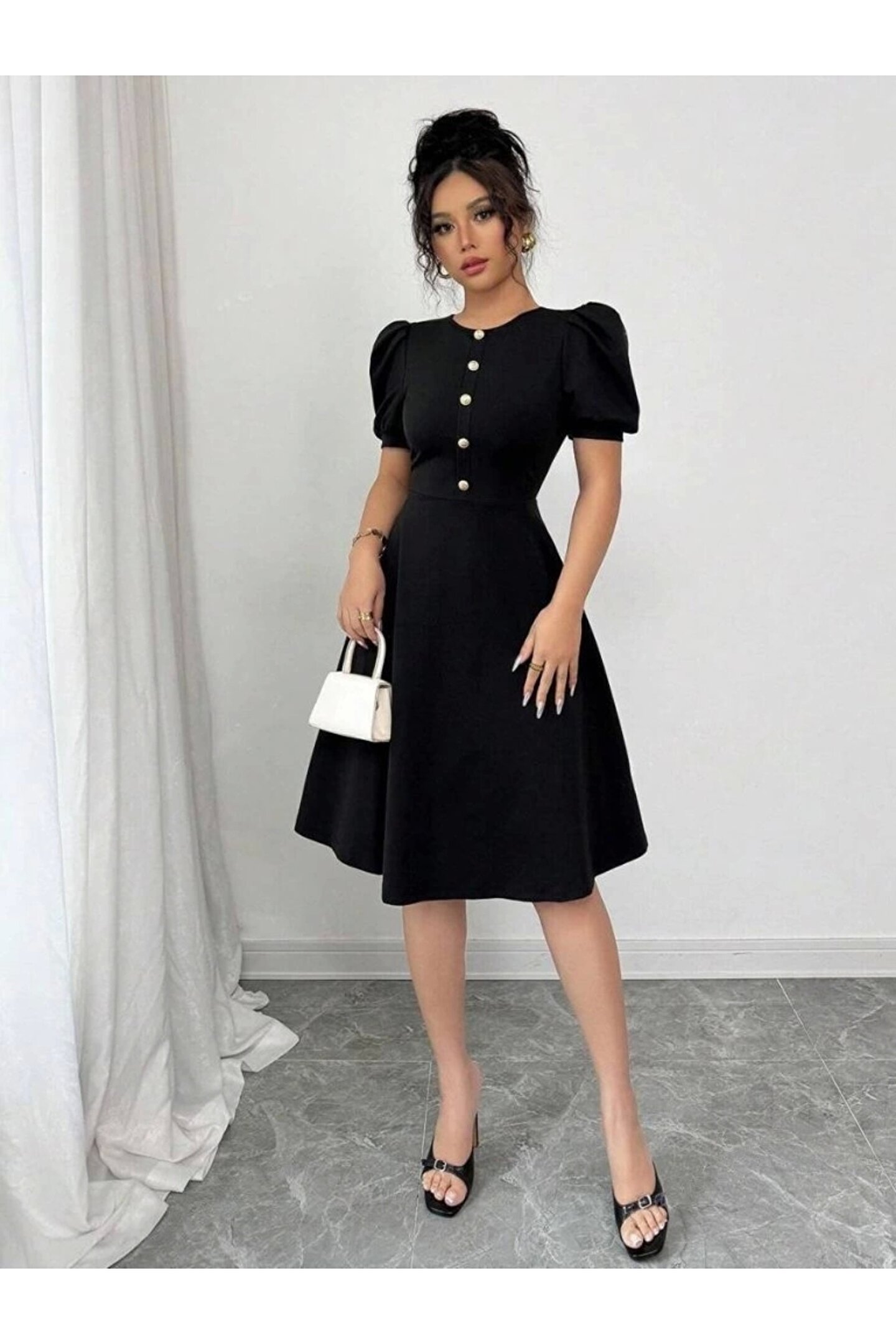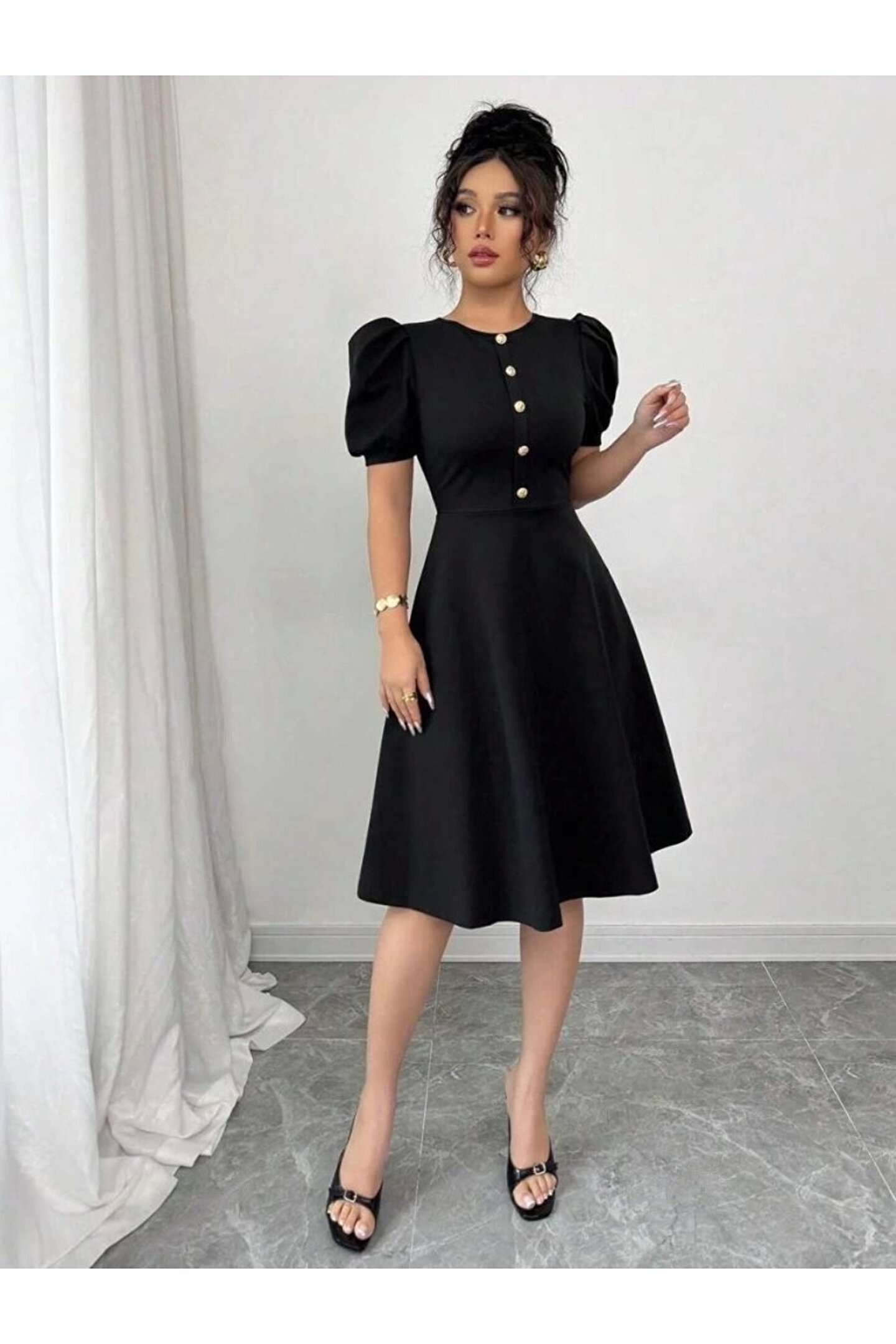 Butik Moda Shop & Kadın Kısa Kollu Bisiklet Yaka Önden Düğmeli Ithal Krep Elbise