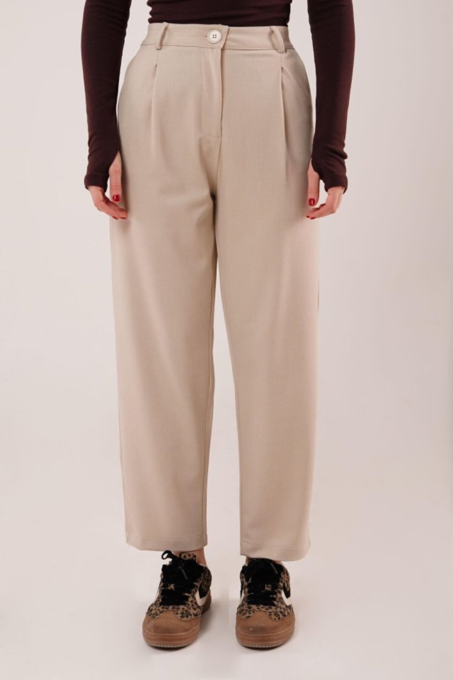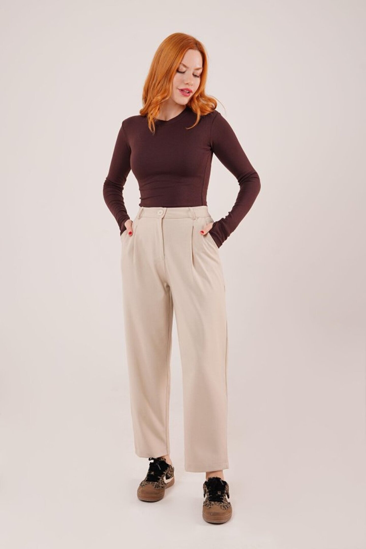 Butik MODAVERA Kapama Cep Detaylı Krem Pantolon