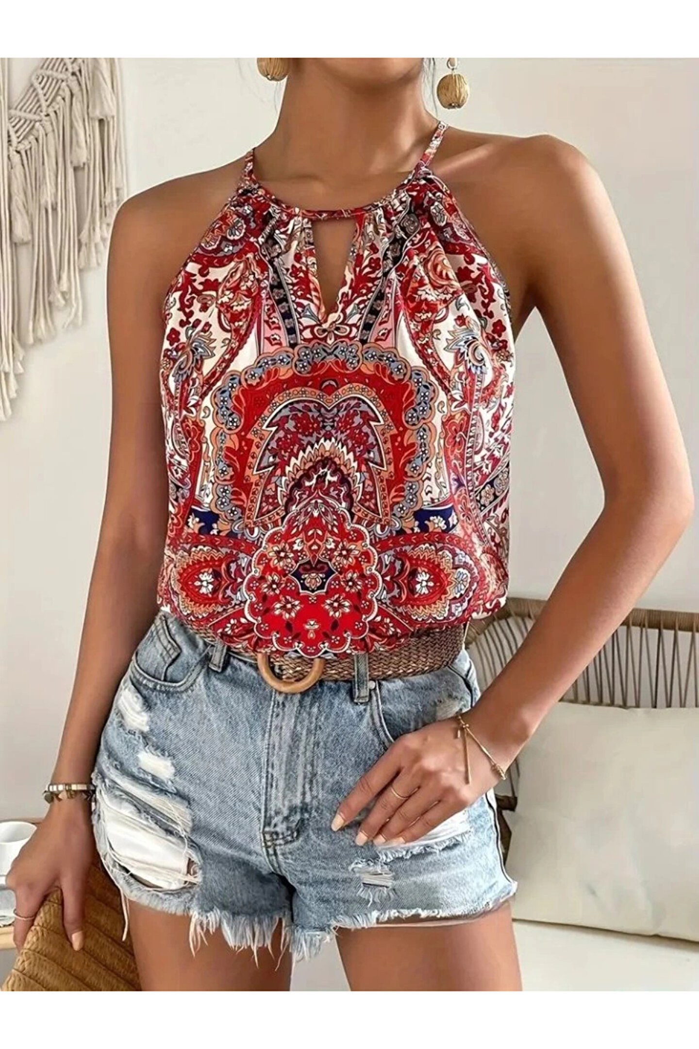 BY ELİZE Kadın Halter Kollu Damla Detaylı Desenli Süprem Bluz