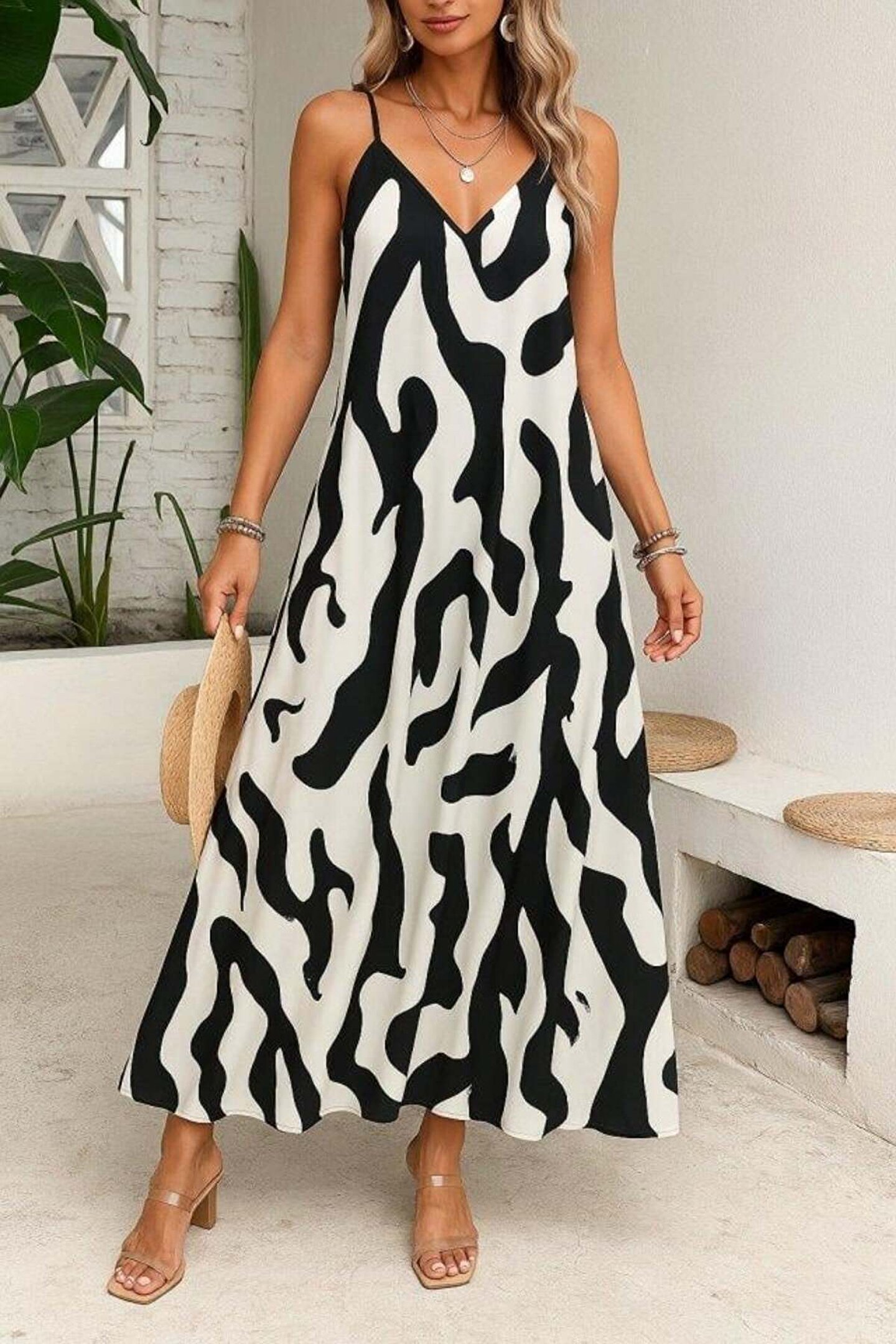 Kadın Ip Askılı Geniş V Yakalı Leopar Desenli Süprem Elbise