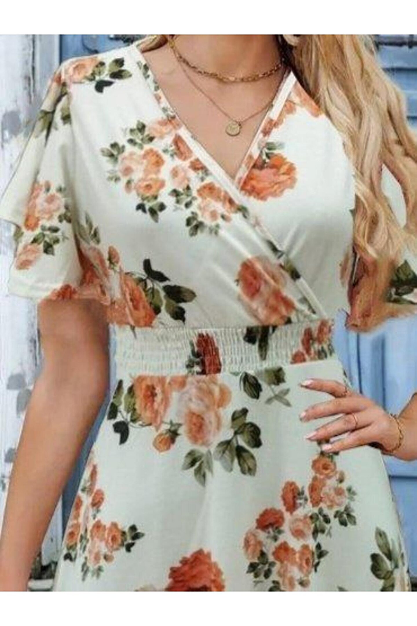 BY ELİZE Kadın Kısa Kollu Kruvaze Yakalı Desenli Süprem Kısa Elbise
