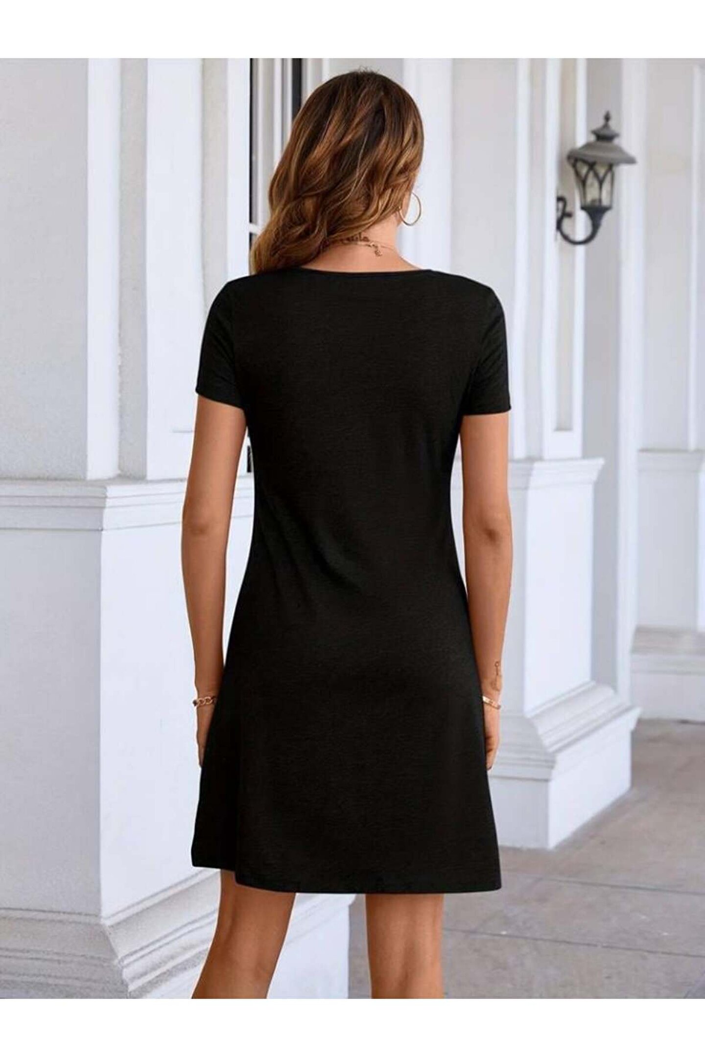 Kadın Kısa Kollu Yaka Detay Viskon Elbise