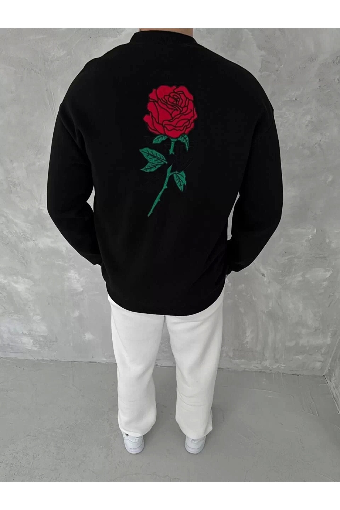 Unisex Bisiklet Yaka Ön Ve Arka Baskılı SweatShirt - Siyah