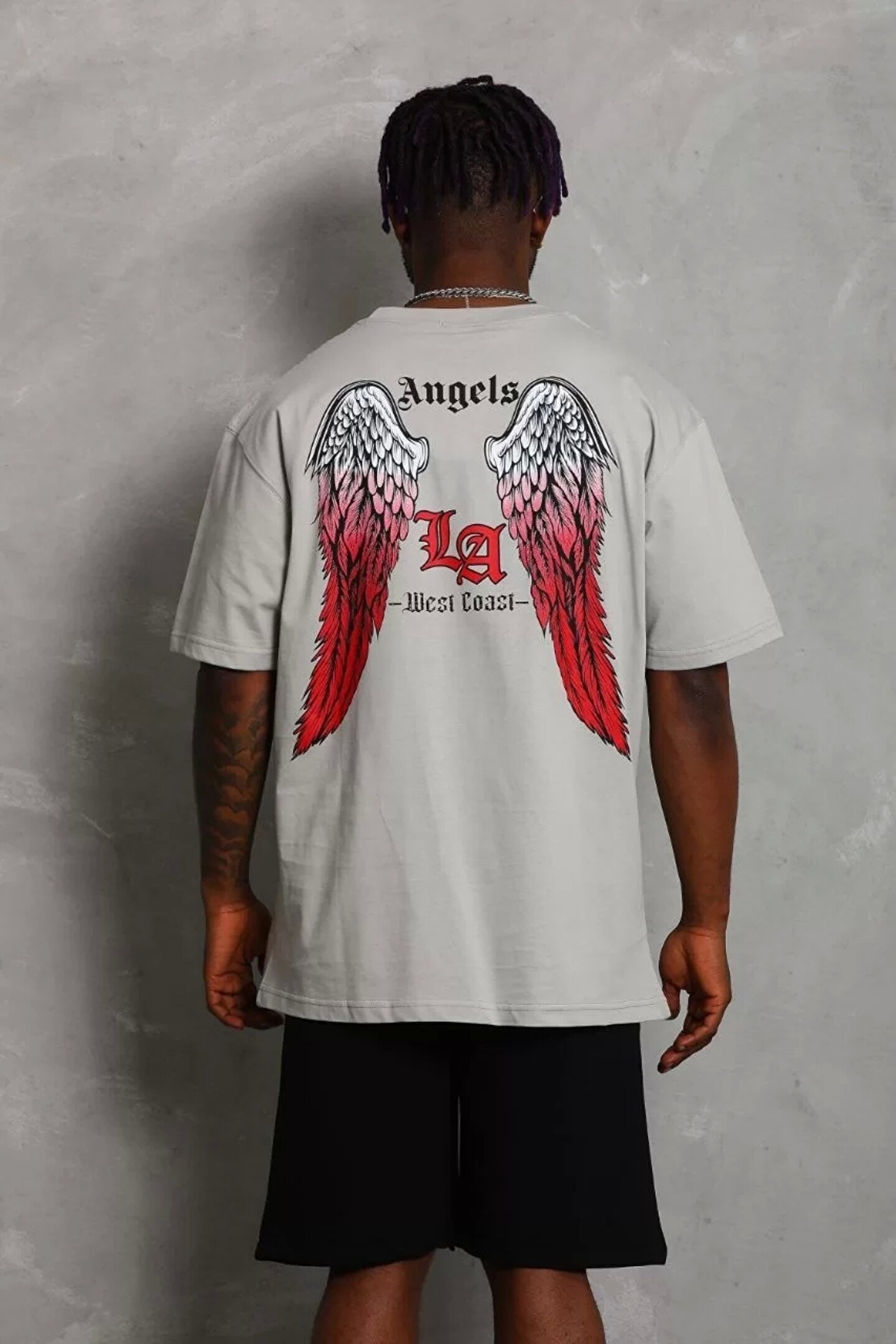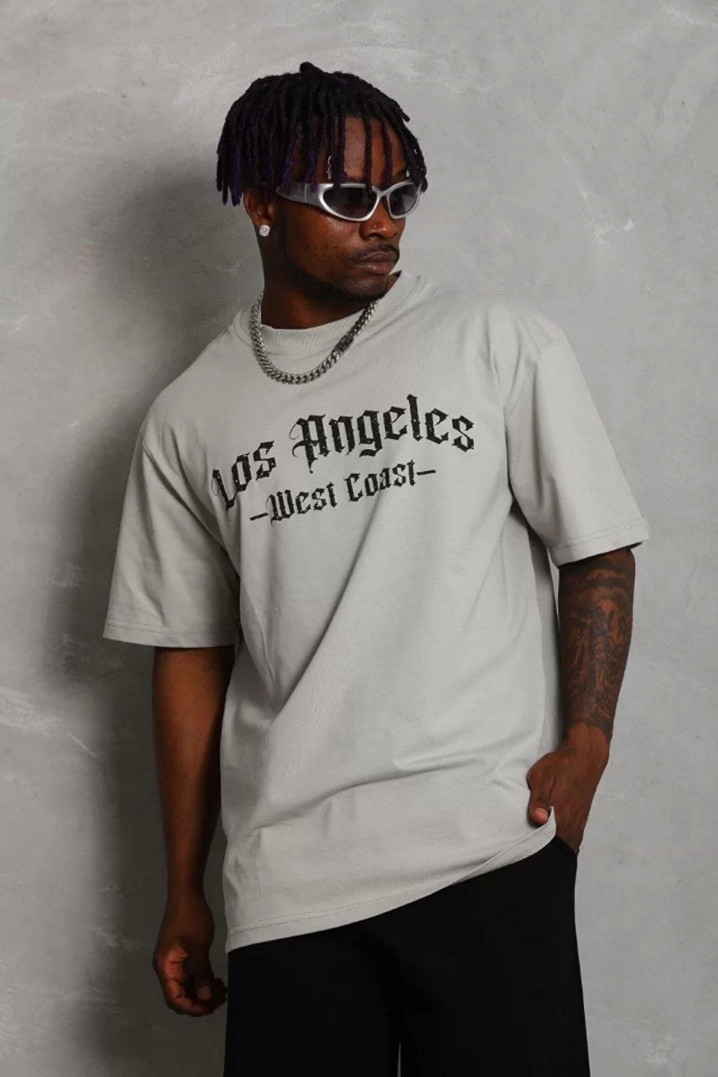 BY ELİZE Unisex Oversize Baskılı Bisiklet Yaka T-Shirt - Gri