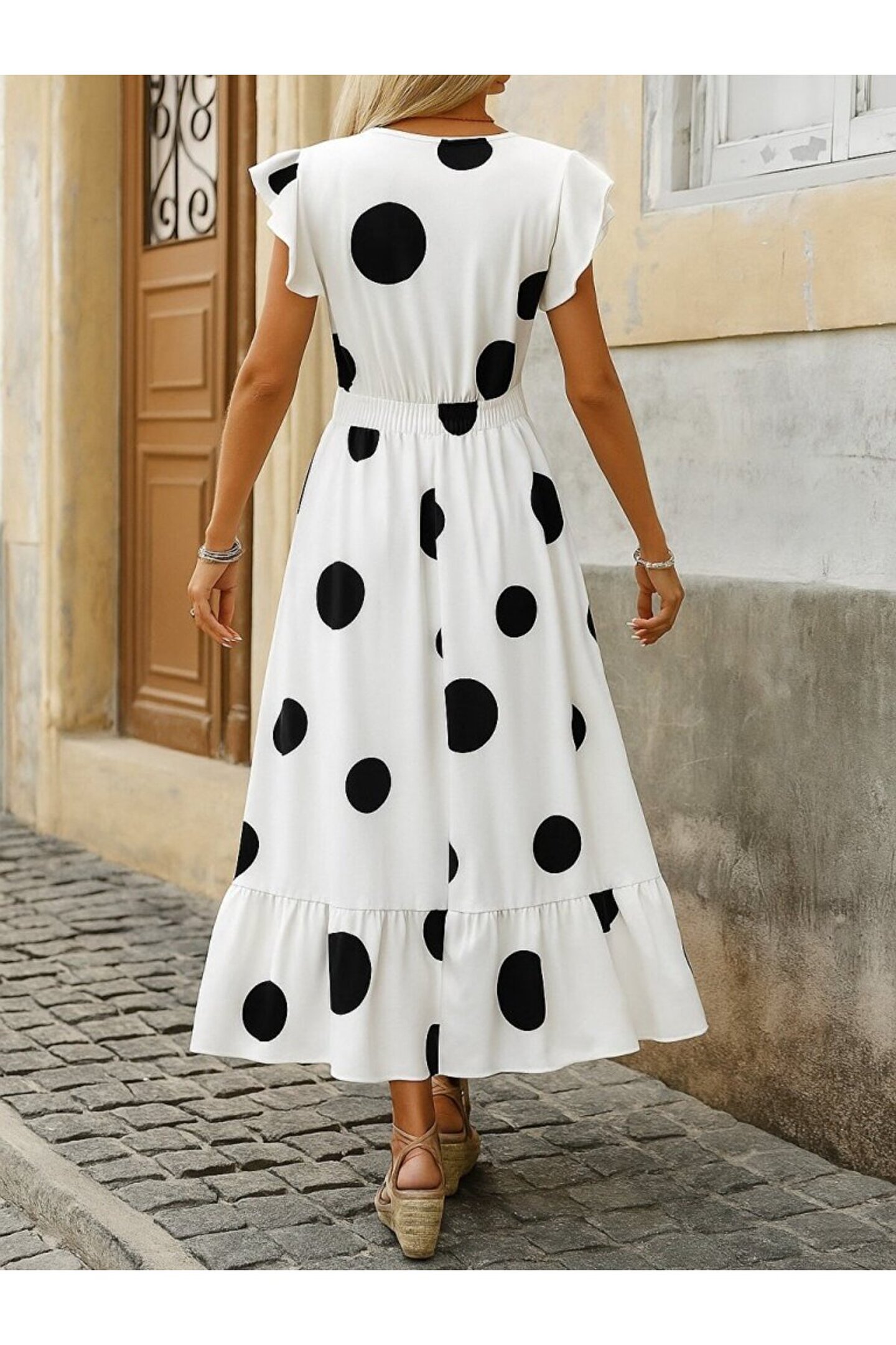 By Sevilen Collection EQURİ Kadın Kısa Kollu Kruvaze Yakalı Fırfırlı Süprem Elbise