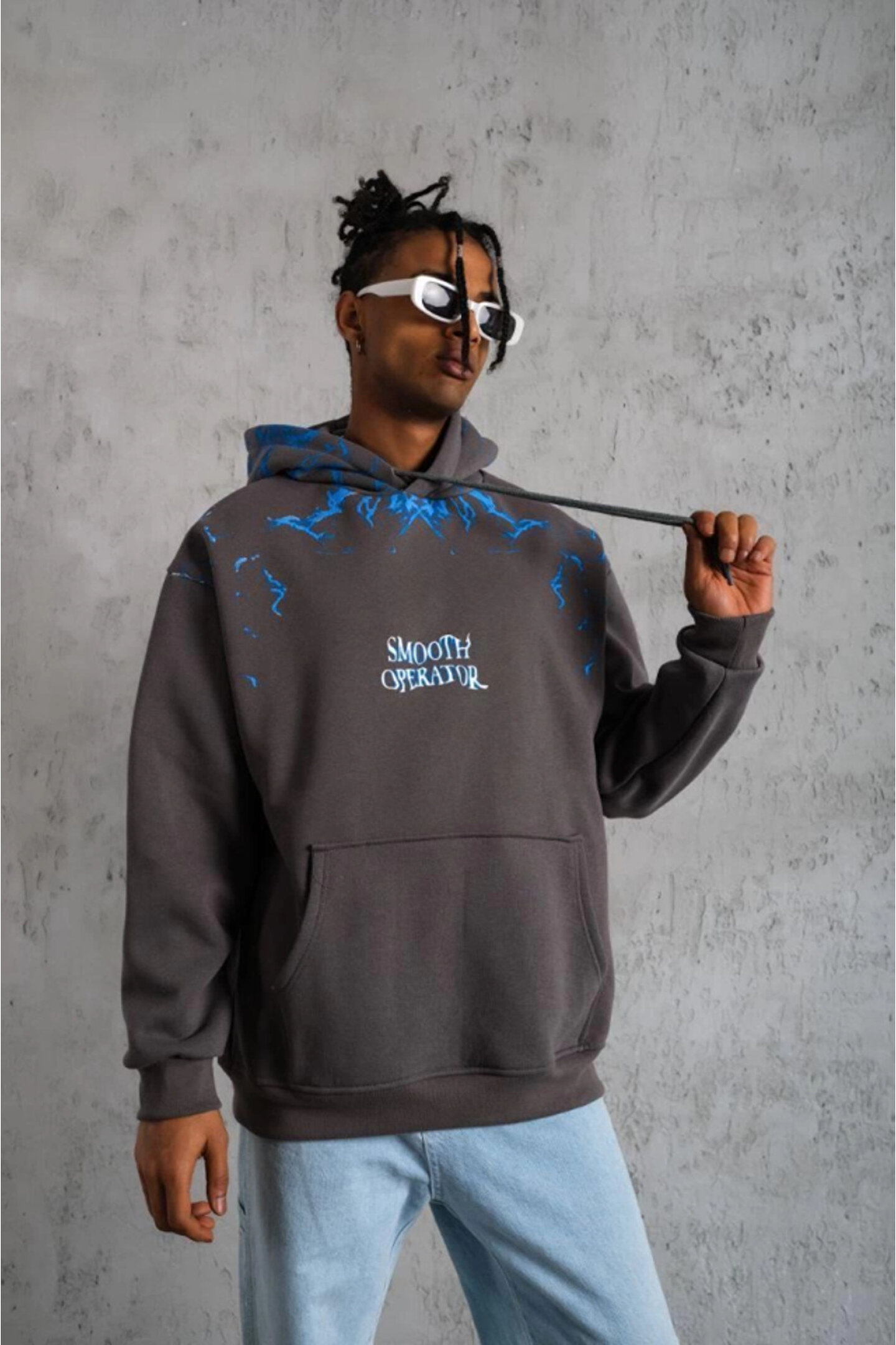 By Sevilen Collection Erkek Yıldırım Baskılı Kapşonlu Sweatshirt - Gri