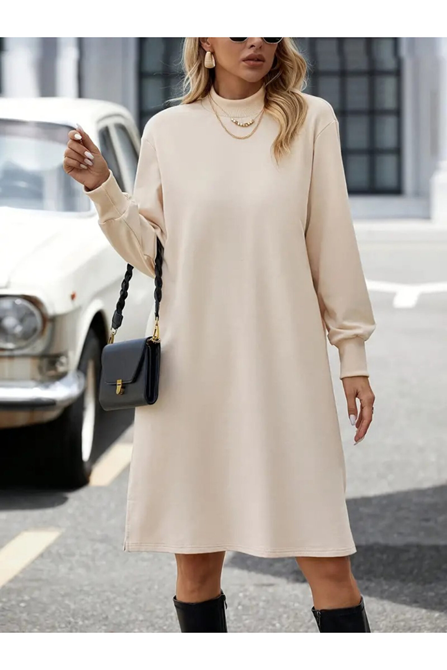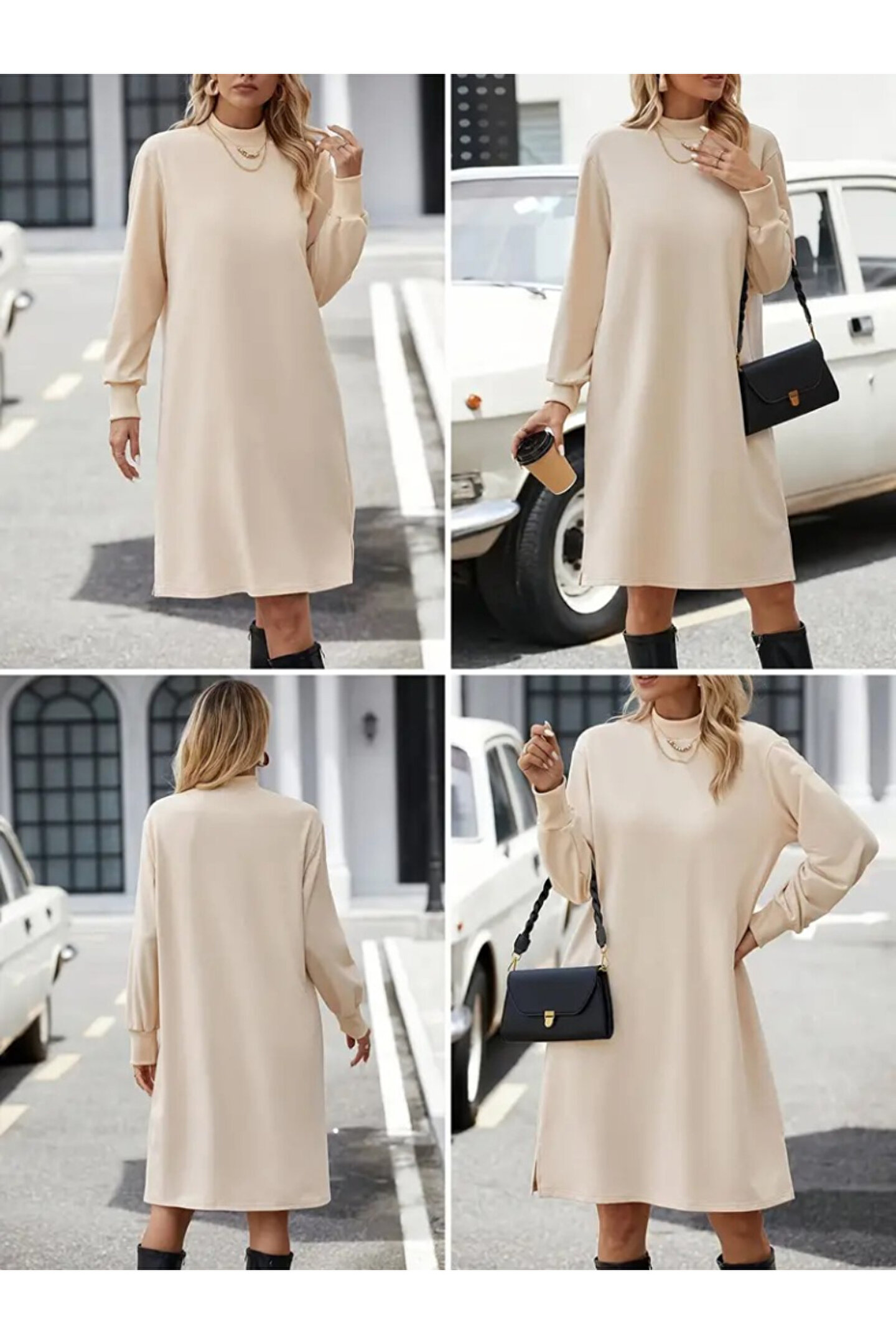 By Sevilen Collection Gökyüzü Moda Kadın Uzun Kollu Balıkçı Yaka Kısa şardonlu Dalgıç Elbise