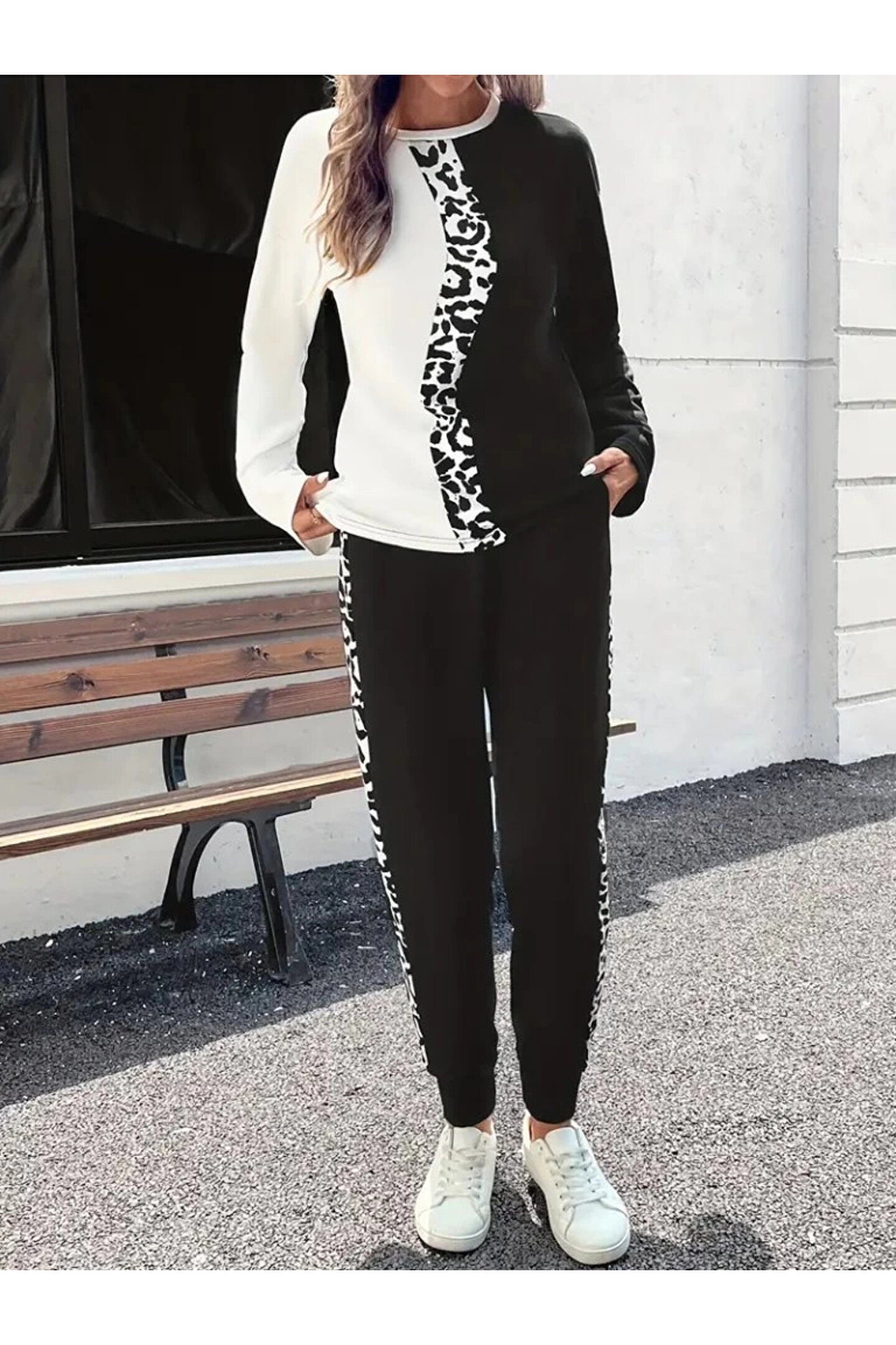 Kadın Uzun Kollu Bisiklet Yaka çift Renkli Viskon Iki Iplik Bluz Ve Pantolon Ikili Takım