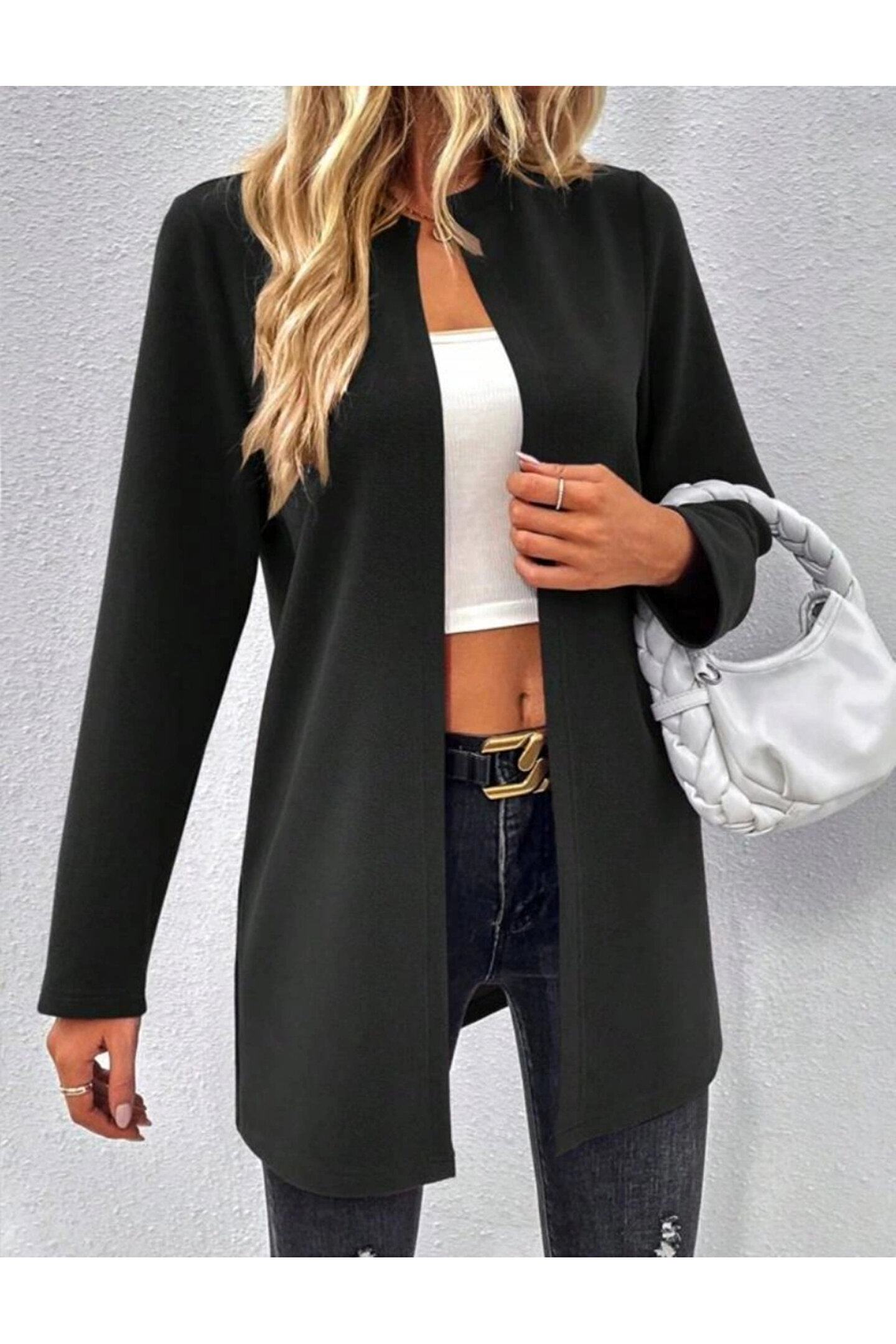 Kadın Uzun Kollu önü Açık Uzun Modal Ceket