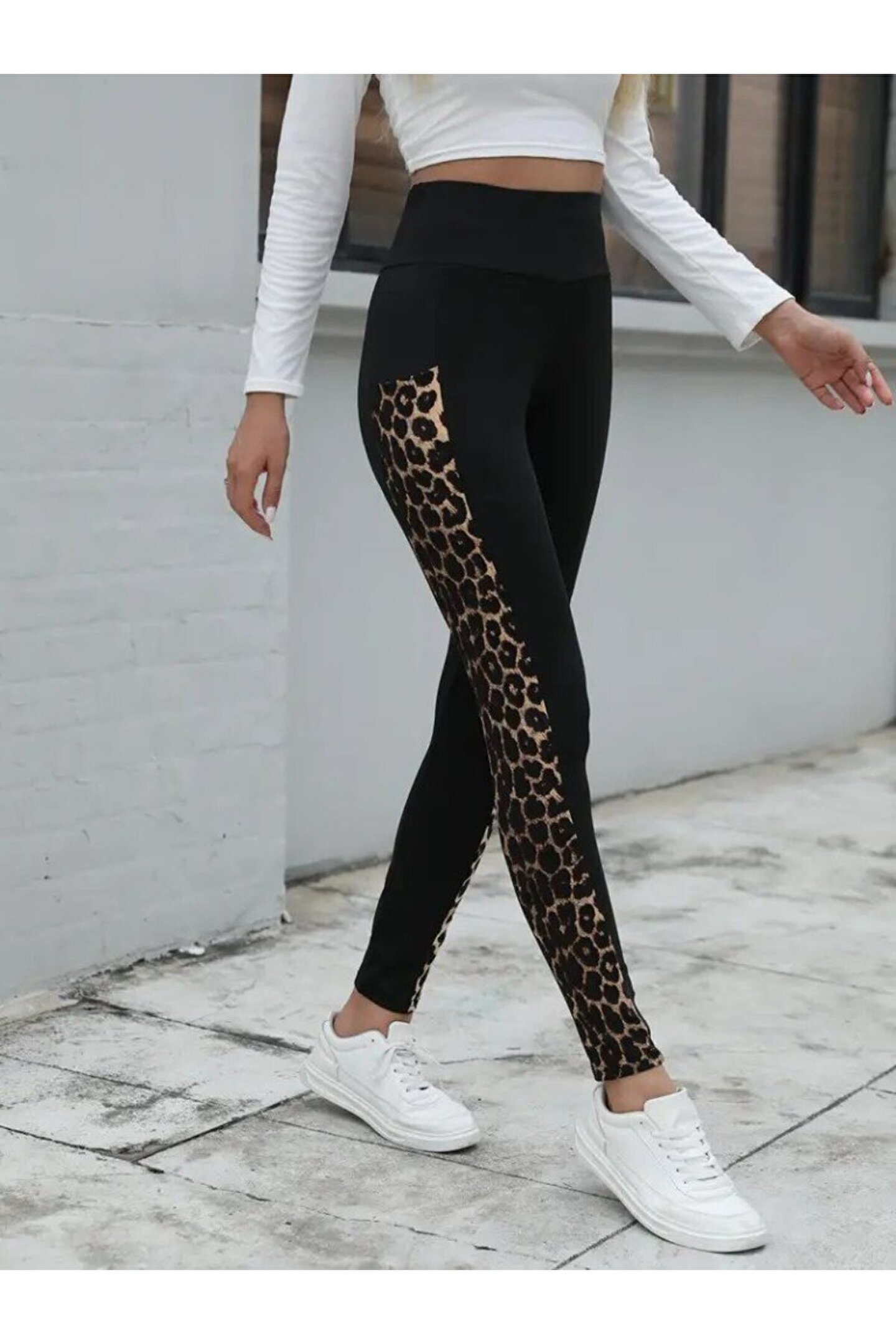 BYHAN MDB Kadın Yüksek Bel Leopar Desen Ve Cep Detaylı Dalgıç Tayt