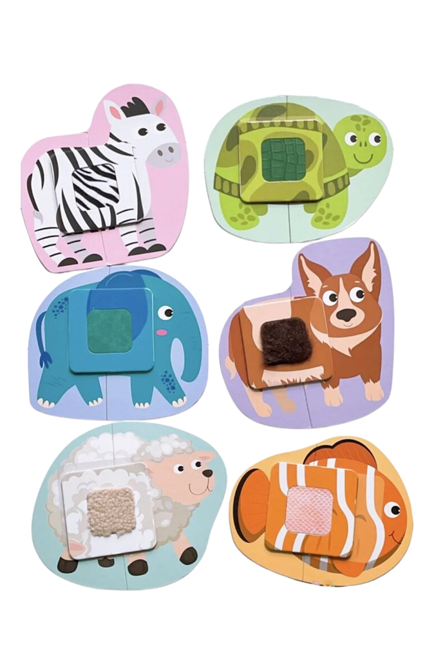Çocuklar bu eğitici dokulu puzzle ile hem eğlenecek hem öğrenecek! Çocuklar kartlarda bulunan çeşitli hayvanların dokularını tanıma olanağı bulacak. ; Dokunma duyusunu geliştirerek yüzeyleri tanımayı sağlar. ; Gözlem ve dikkat algısının gelişmesini sağlar. ; Düşünme becerilerinin gelişimine katkı sağlar. ; Parça Sayısı: 18 parça Yaş Aralığı: 1 yaş ve üzeri için.;