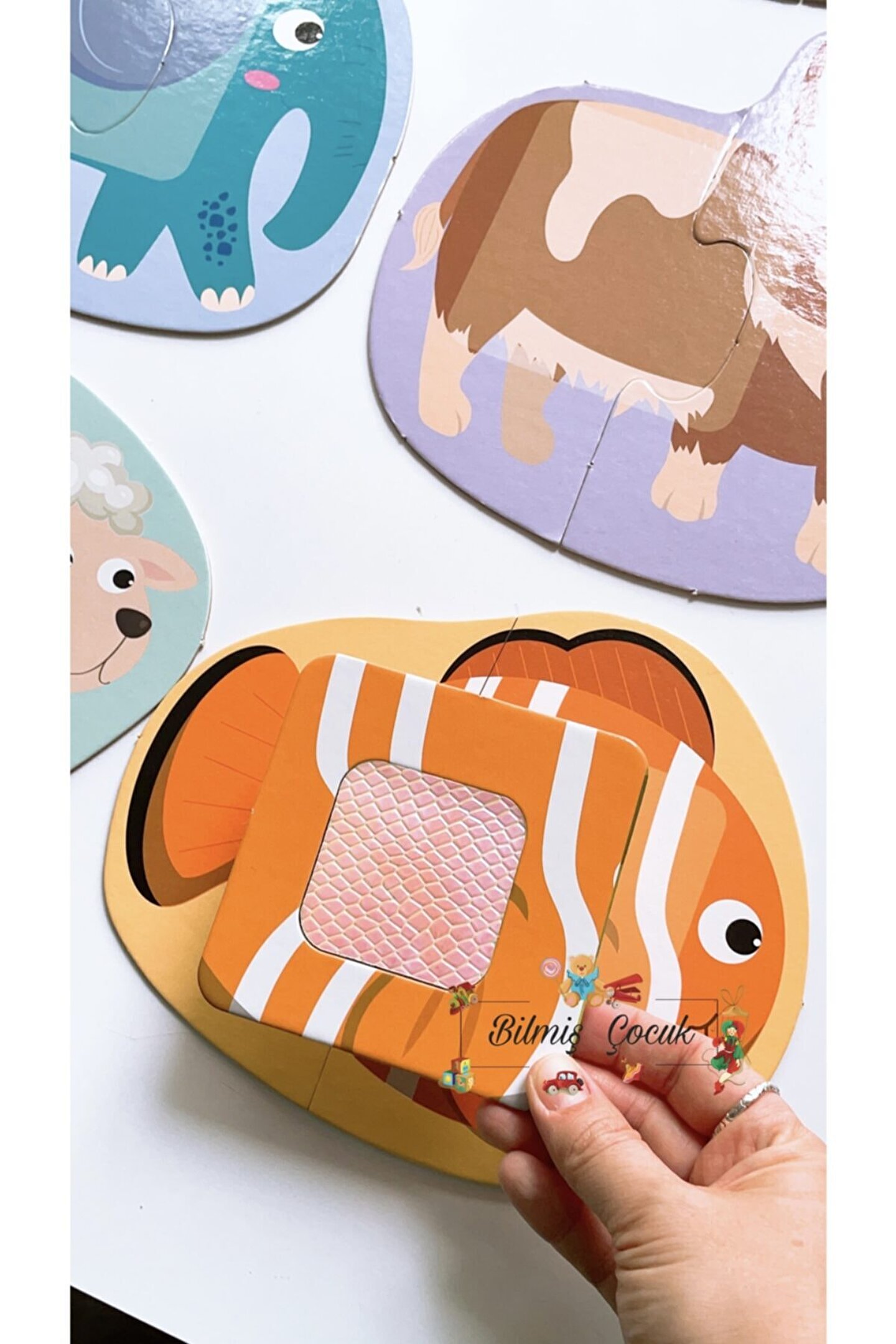 +1 Yaş Hayvanlar Dokulu Puzzle 18 Parça (CA Games) 1 yaş ve üzeri için uygundur. Çocuklar bu eğitici puzzle ile hem eğlenecek hem öğrenecek! Çocuklar kartlarda parçalar halinde bulunan hayvanları birleştirecek ve hayvanların dokularını tanıma olanağı bulacak. Kutu içerisinde 18 parça bulunmaktadır. Çocukların yüzeyleri tanımasına olanak sağlayan bu kartlar ; Gözlem ve dikkat algısının gelişmesine yardımcı olur, Düşünme becerilerinin gelişimine katkı sağlar, Dil ve konuşma yeteneğinin, el ve mantıksal akıl yürütme becerilerinin gelişimini destekler. ;