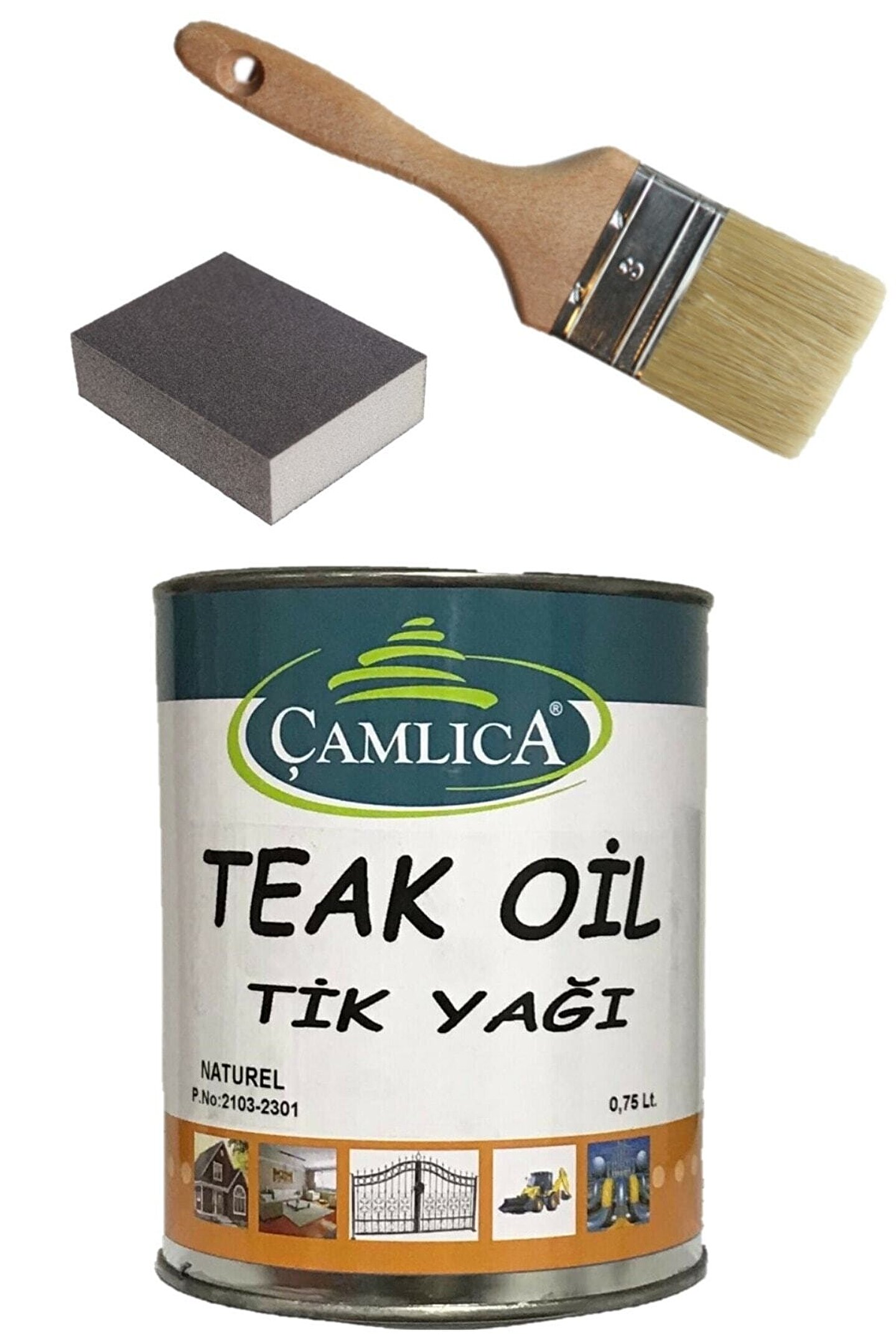 Komple Al Uygula Setimizin İçeriği;; 0,75 Litre Çamlıca Teak Oil; No:3 Ahşap Saplı Lüx Fırça; Takoz Zımpara;