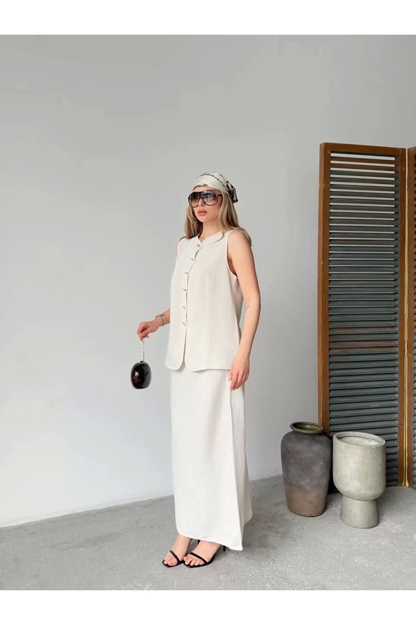 Keten Kolsuz Hırka Etek Ikili Takım- Beyaz Siparişleriniz özenle bir şekilde hazırlanılıp 24 saat içerisinde kargoya verilmektedir.; kargo firması olarak ile çalışmaktayız.; siparişinizi oluşturduktan sonra 1-4 gün içerisinde ürünleriniz elinize ulaşmış olacaktır.; Özel ve sıradışı tasarım ürünlerimiz, yaşamınıza benzersiz bir çekicilik ve tarz katacak.; Günlük hayatta giyim üzeri vücut aksesuarı gibi kullanabileceğiniz özel parçalar sunuyoruz.; Bu ürünlerle kendinizi özgürce ifade edebilir, kişisel tarzınızı ön plana çıkarabilirsiniz.; Her biri özenle seçilmiş, yüksek kaliteli malzemelerle üretilmiş olan tasarımlarımız, özel yaşamınızda da dikkat çekici detaylar sunar.; Göz alıcı ve çekici olmalarının yanı sıra, konfor ve kullanışlılık da sağlamak için özen gösteriyoruz.; Gündelik hayatta şıklığınızı tamamlamanın yanı sıra özel anlarınızda da kendinizi özel hissetmenizi sağlayacak ürünlerimiz, sizin tarzınızı ve zevkinizi yansıtmak için özel olarak tasarlanmıştır.; Asmirayı keşfedin ve tarzınızı yansıtan özel parçalarla kendinizi ifade etmenin keyfini çıkarın!