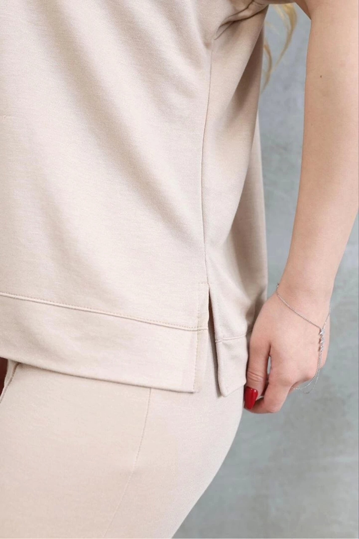 CanselButik Osy Modal Yumuşak dokulu Kumaş Bisiklet Yaka Kısa Kollu Takım - Bej