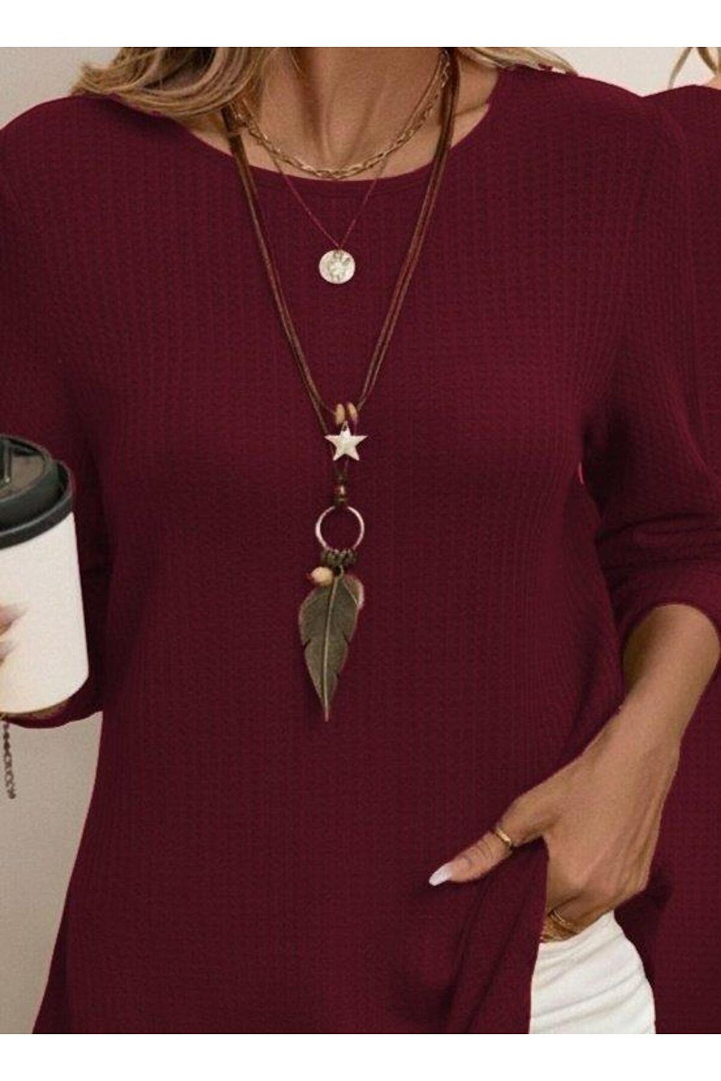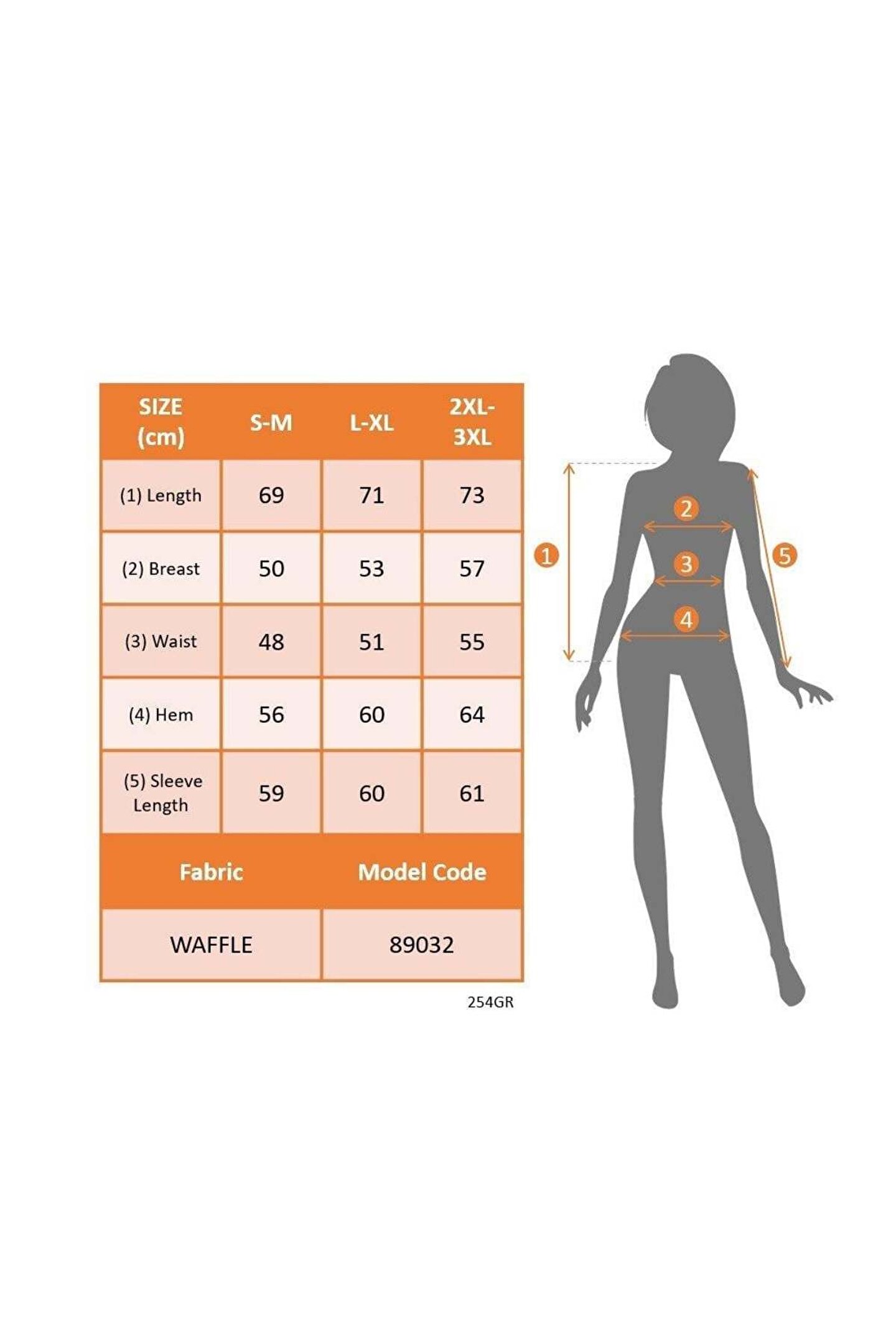 Kadın Uzun Kollu Yuvarlak Yaka Arkadan Düğmeli Waffle Bluz