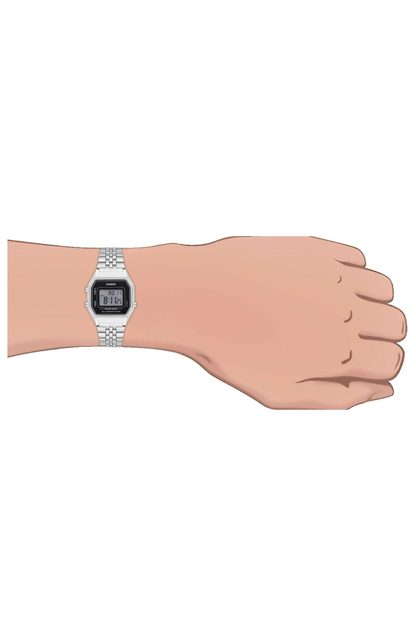 Özellikler • 1/100 saniye hassasiyetli kronometre • Alarm • LED ışığı • Su geçirmez • Paslanmaz çelik kordon • Popüler retro tasarım Teknik Özellikler Silikon Cam Su Geçirmez Gövde / çerçeve malzemesi: Silikon / Krom kaplama Paslanmaz Çelik Kordon Ayarlanabilir Toka LED ışık 1/100 saniye hassasiyetli kronometre Ölçüm kapasitesi: 59'59.99" Ölçüm modları: Geçen süre, bölüm süresi, 1. ve 2. gelenlerin süreleri Günlük alarm Saat sinyali Otomatik takvim (Şubat için 28 gün) 12/24 saat biçimi Normal saat işlemleri: Saat, dakika, saniye, pm, tarih, gün Hassasiyet: ±30 saniye/ay Yaklaşık pil ömrü: CR1616 ile 5 yıl Kılıf boyutu: 33,5 × 28,6 × 8,6 mm Toplam ağırlık: 36 g LED: Koyu Kahverengi