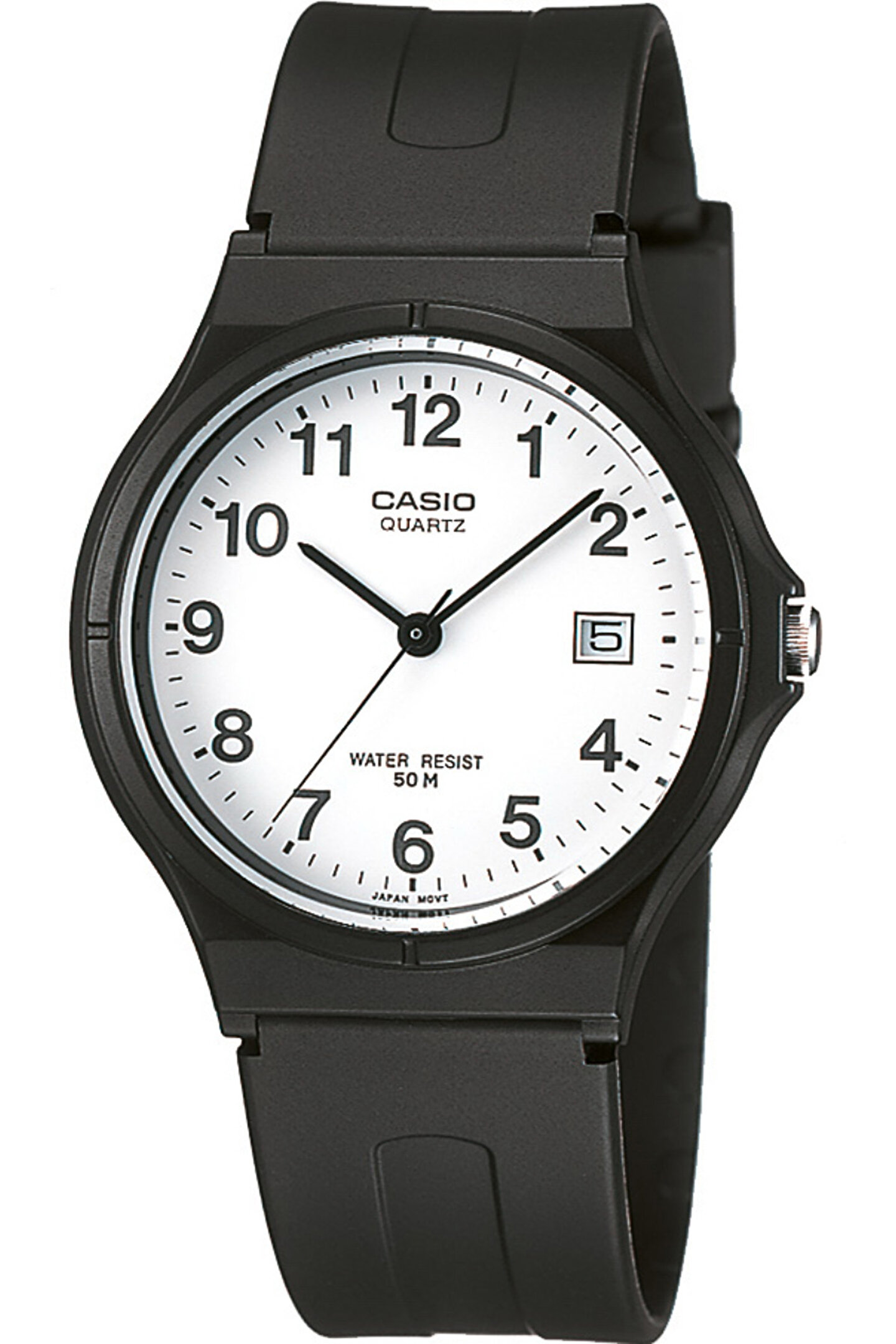 Sitemizde bulunan tüm Casio Ürün Modelleri Resmi Distribütör güvencesi altındadır.; Alacağınız bu ürün 2 yıl garanti kapsamındadır.; Siparişiniz orijinal garanti belgesi , faturası ve kutusu ile anlaşmalı kargo firması tarafından adresinize ücretsiz teslim edilecektir.; ÜRÜN BİLGİSİ KASA YAPISI KADRAN YAPISI KORDON YAPISI ÖZELLİKLER Cinsiyet:Erkek Marka:Casio Çalışma Tipi:Pilli Garanti:2 Yıl Kasa Çapı:36 mm Kasa Şekli:Yuvarlak Kasa Materyali:Plastik Kasa Taşı:Yok Kasa Rengi:Siyah Kadran Tipi:Analog Kadran Rengi:Beyaz Kadran Taşı:Yok Kordon Tipi:Silikon Kordon Rengi:Siyah Su Geçirmezlik:5 ATM Kronometre:Yok Takvim:Var Cam:Mineral Alarm:Yok