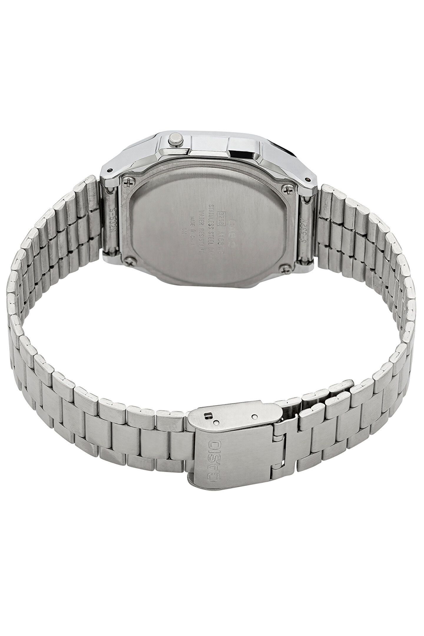 Temel Özellikler; Alarm, Aydınlatma, Kronometre, Takvim Genel Özellikler; Tarz : Retro Saat Kasa Şekli : Köşeli Kasa Cinsi : Plastik Kasa Rengi : Gri Kadran Rengi : Gri Kordon Rengi : Gri Kordon Tipi : Çelik Cam Tipi : Organik Su Geçirmezlik : 0 Atm (Suya temas etmemeli!) Ağırlık : 49 Gr Ölçü : 36.3x38.6x9.6 Makine Tipi : Digital Menşei : Çin Diğer Özellikler; Ayarlanabilir Klips, 7 Yıl Pil Ömrü, 12/24 Saat Formatı