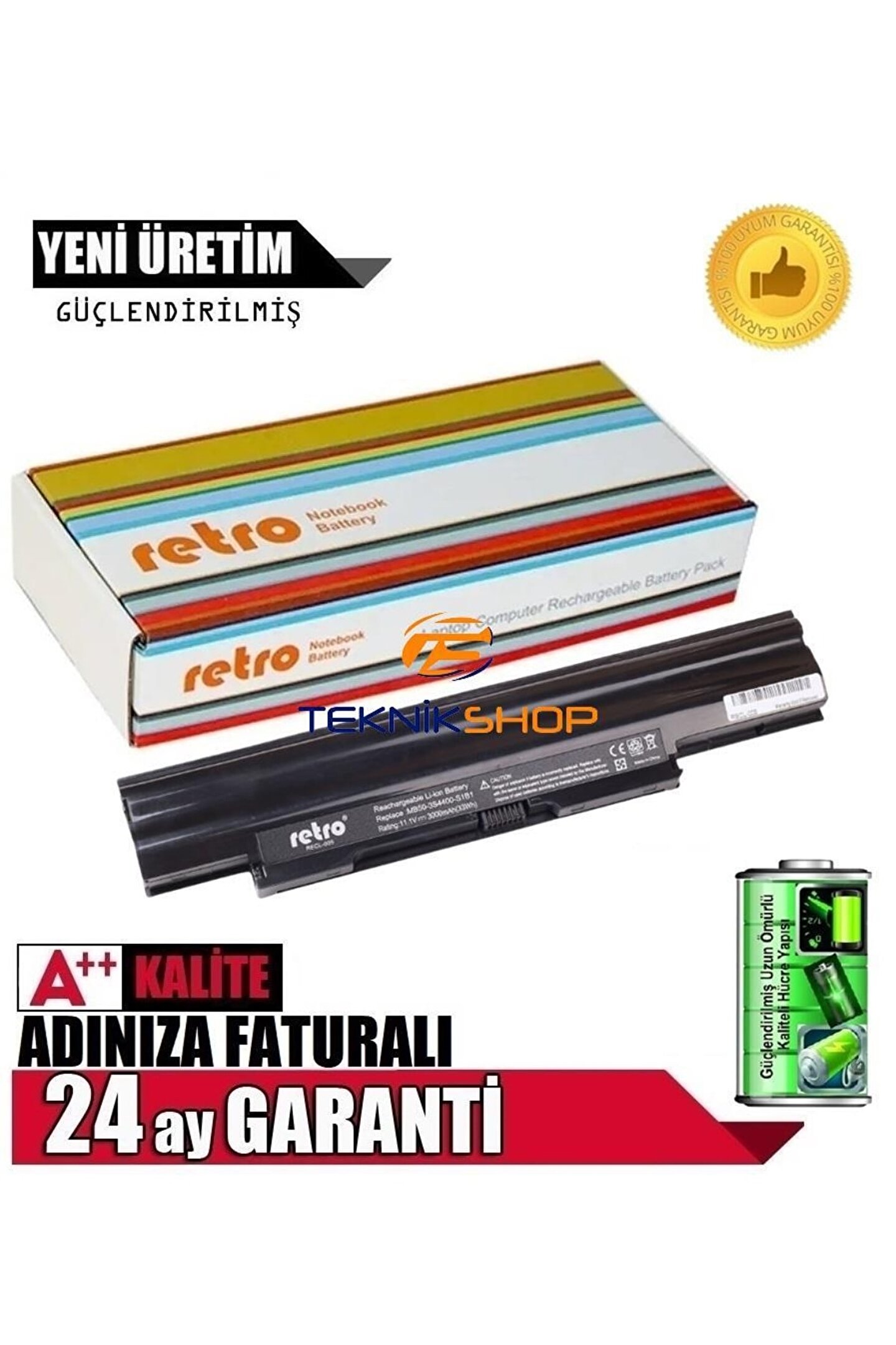 Marka Afila & Retro Durumu Yeni ürün Hücreler (Cells) Li; ion; 6 Cell Voltaj (V) 10; 8 Kapasite (mAh) 6000 Güç (Wh) 65 Renk Siyah Ağırlık (g) 339 Ebatlar (mm) 271 x 55; 51 x 21; 70 Model EAN13 Parça Kodları MB50; 4S2200; S1B1, MB50; 4S2200; G1L3, MB50; 3S4400; S1B1, MB50; 3S4400; G1L3,MB50; 3S5200; S1B1, MB50; 3S5200; S1L5, MB50; 3S5200; G1L5, MB50; 4S4400; S1B1,MB50; 4S4400; G1L3 Uyumlu Modeller Casper Nirvana MB50, MB51, MB55Vestel Onyx MB50, MB51, MB55 Notlar 10; 8V, 11; 1V, 14; 4V ve 14; 8V batarya kullanan tüm modeller ile uyumludur;