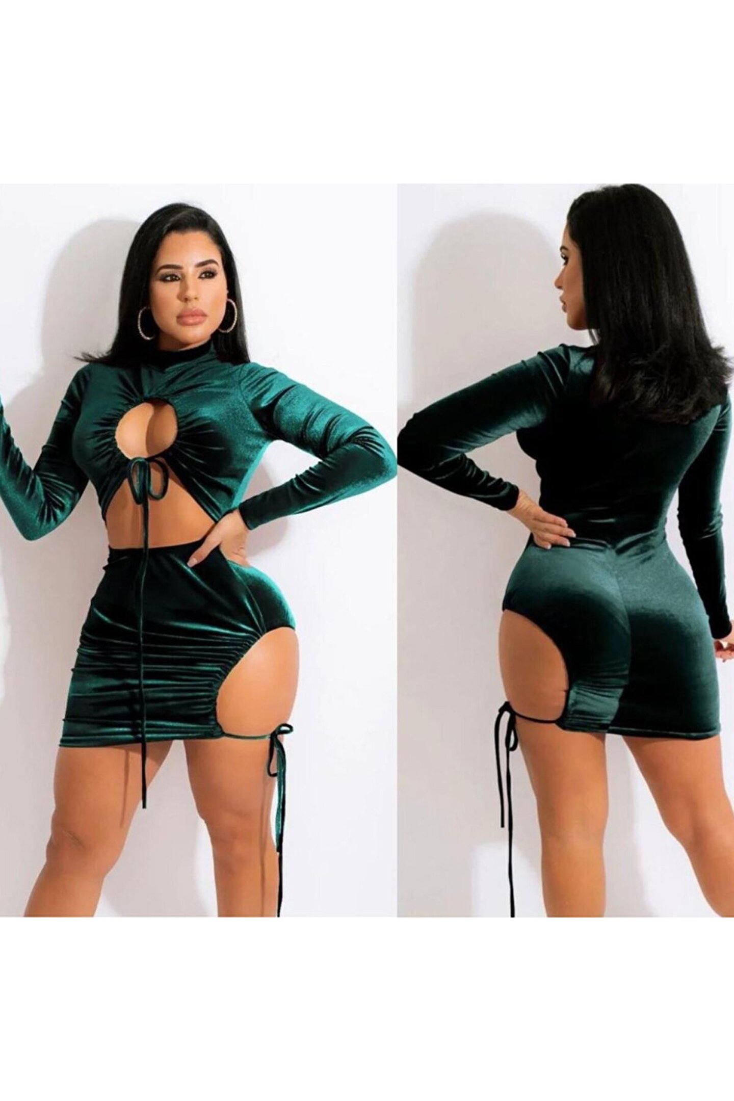 EQURİ Kadın Uzun Kollu Full Dekolte Detay Kadife Kumaş Elbise